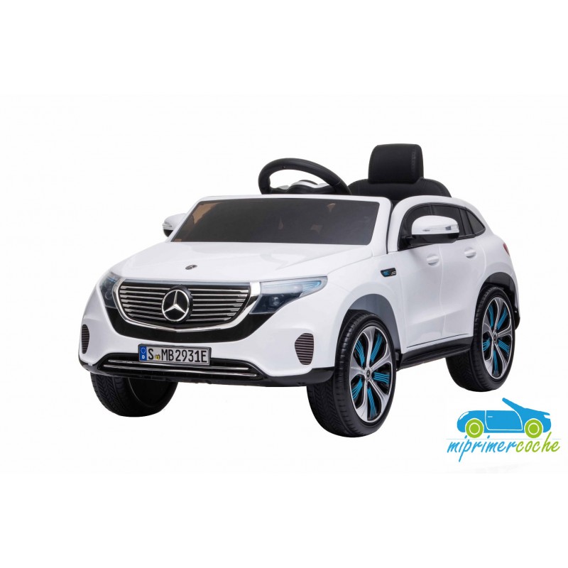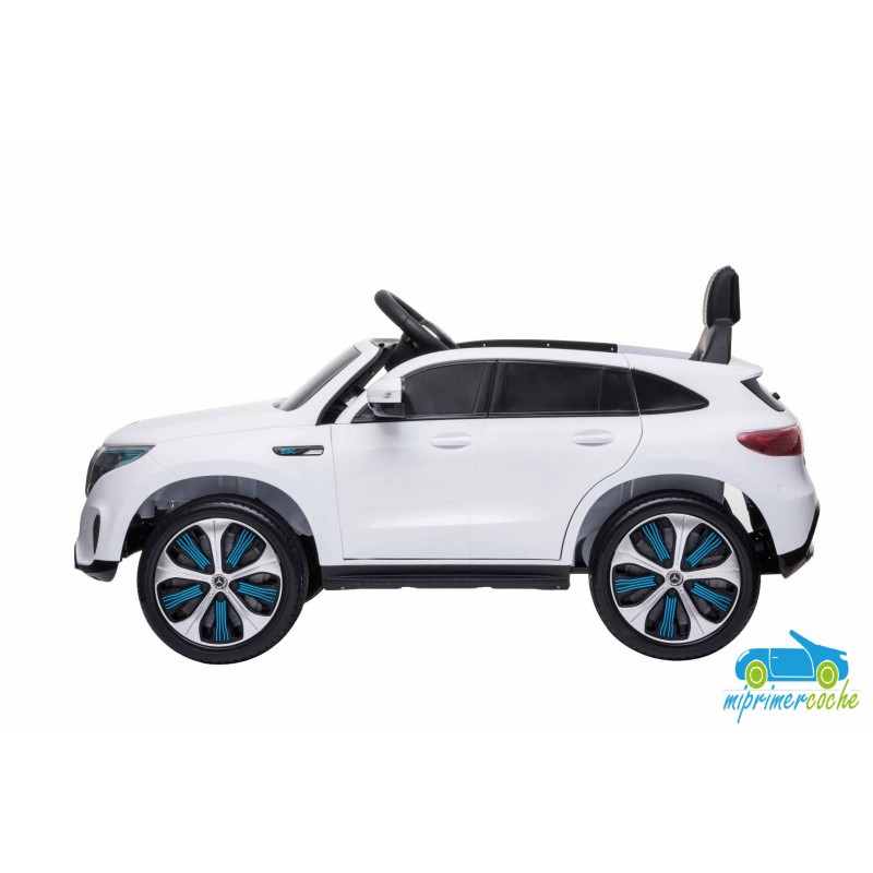 Coche eléctrico para niños MERCEDES EQC 12V con mando parental 2.4G , 1 plaza , ruedas de caucho , 2 motores , asiento en piel .