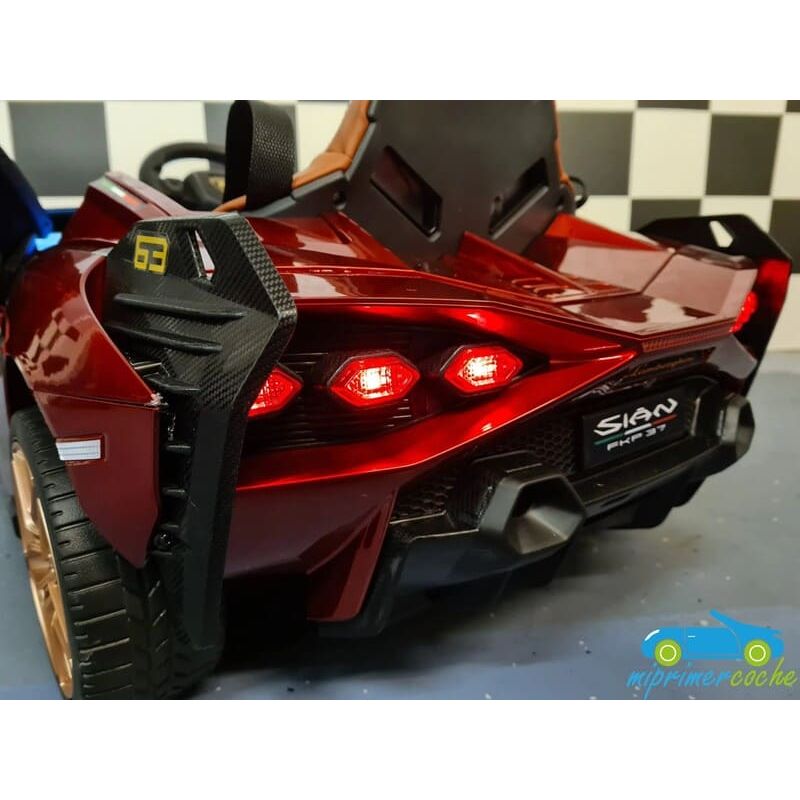Coche eléctrico para niños LAMBORGHINI SIAN 12V con mando parental 2.4G, ruedas de caucho, asiento en piel, 2 motores 12V, asa de transporte, MP4 .