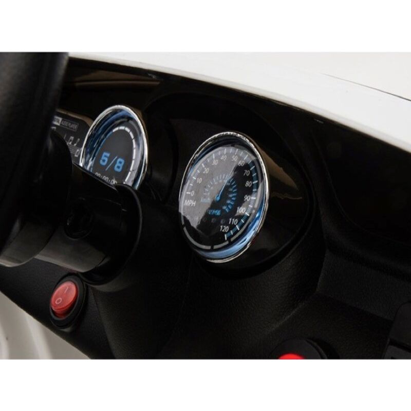 - el coche puede ser controlado por el padre gracias al mando distancia 2.4G con funciones de marcha hacia delante / atrás , girar izquierda / derecha , selector de velocidades y botón de paro de emergencia .