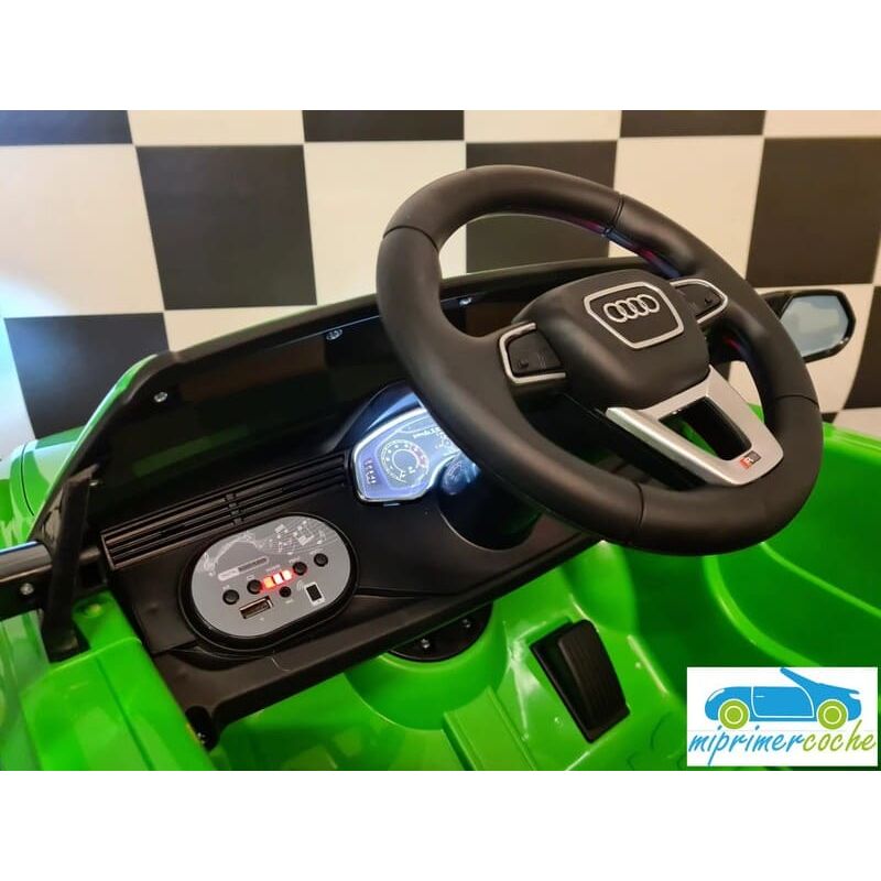 Coche eléctrico infantil AUDI RSQ8 12V , con mando parental , ruedas de caucho , asiento en polipiel , 2 motores , luces , equipo de música .