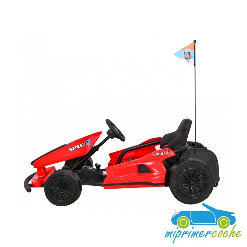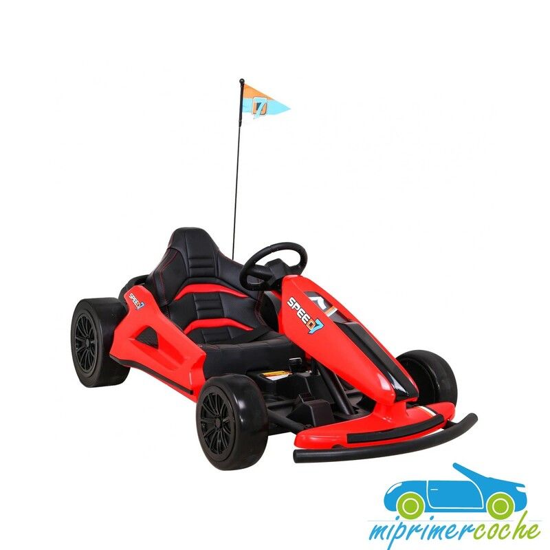 El coche eléctrico infantil DRIFT KART SPEED 7 KING 24V es un coche con un diseño realista , construcción masiva , equipado con 2 motores de alta prestación 150w por cada motor , gracias a estas prestaciones es capaz de realizar derrape a una velocidad de 13 km/h .