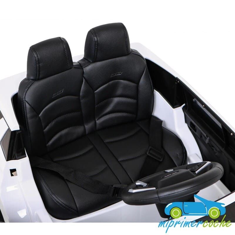 · en el volante del coche eléctrico se encuentra botones de claxon y música pregrabada