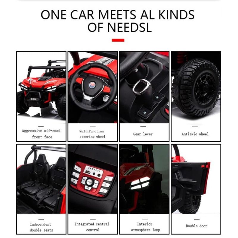 - el coche puede ser controlado por el padre gracias al mando distancia 2.4G con funciones de marcha hacia delante / atrás , girar izquierda / derecha , selector de velocidades y botón de paro de emergencia .