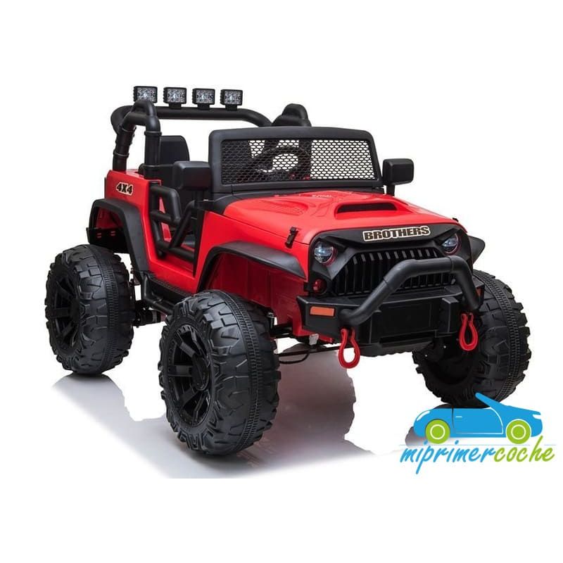 Un todoterreno que puede con todo , con 2 motores 200w , ruedas de caucho , lo que le permite ir por todos los terrenos y capaz de soportar hasta 60 kilos .Equipado también con asiento muy espacioso acolchado en polipiel , es un coche de grandes dimensiones .