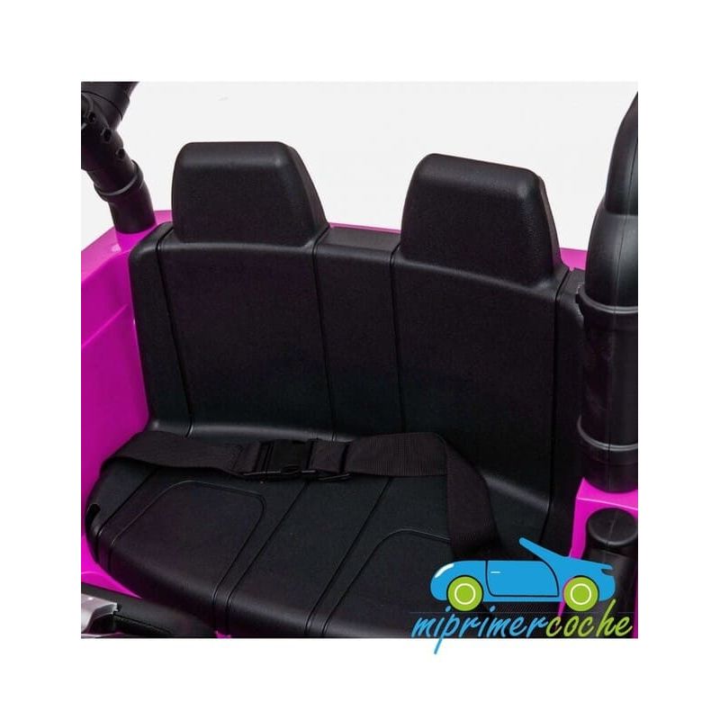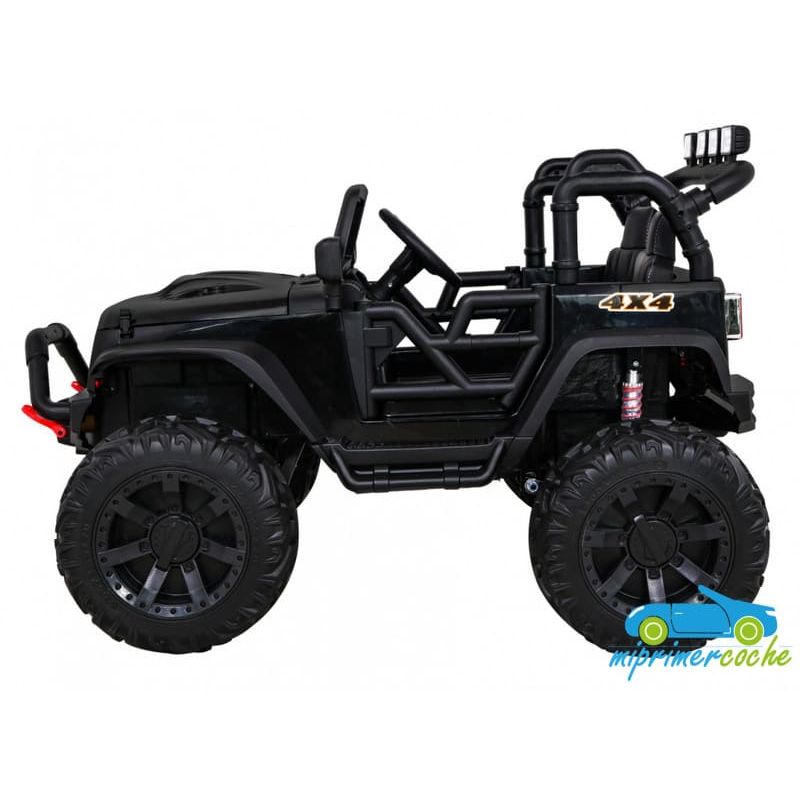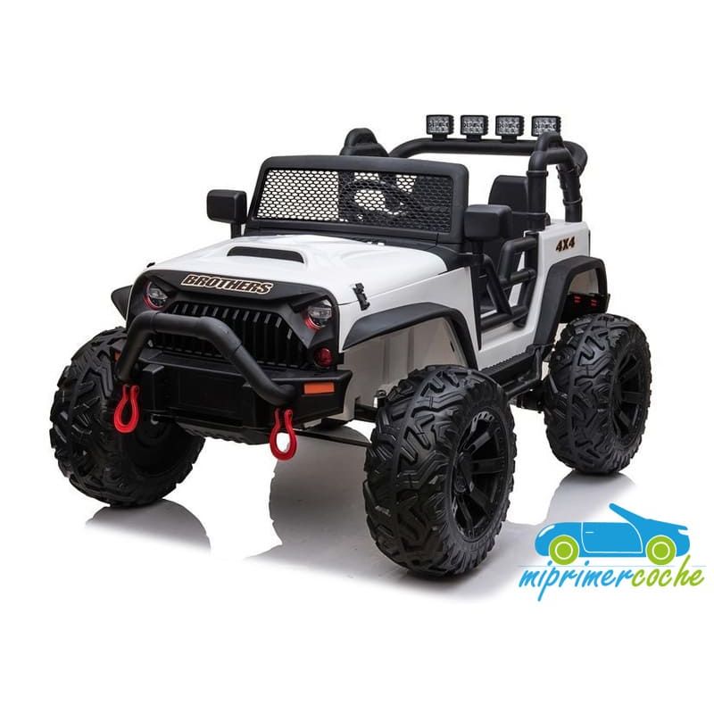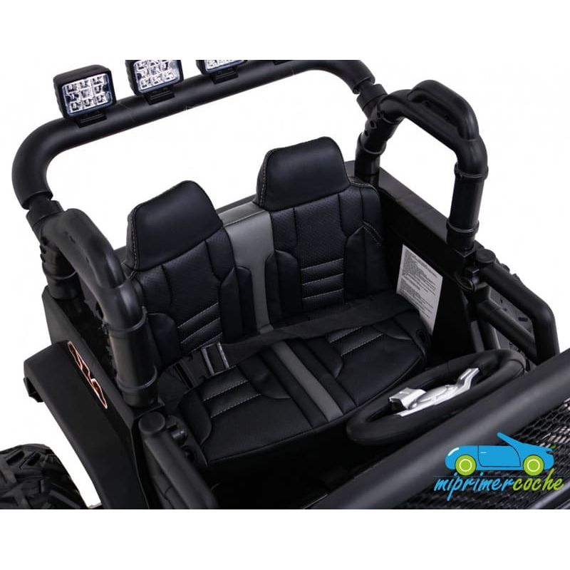 Un todoterreno que puede con todo , con 2 motores 200w , ruedas de caucho , lo que le permite ir por todos los terrenos y capaz de soportar hasta 60 kilos .Equipado también con asiento muy espacioso acolchado en polipiel , es un coche de grandes dimensiones .
