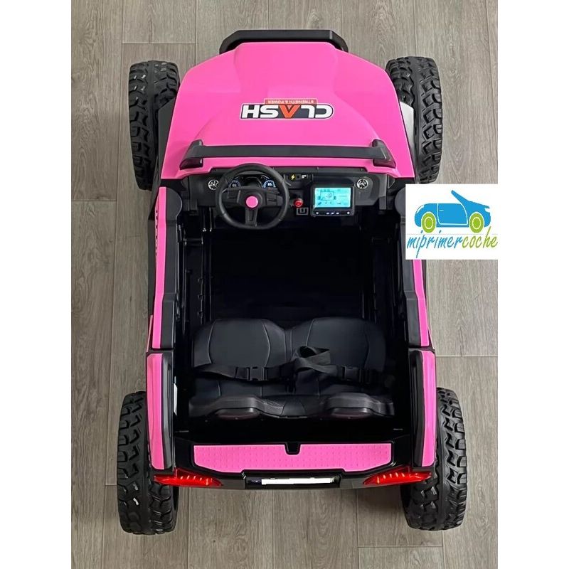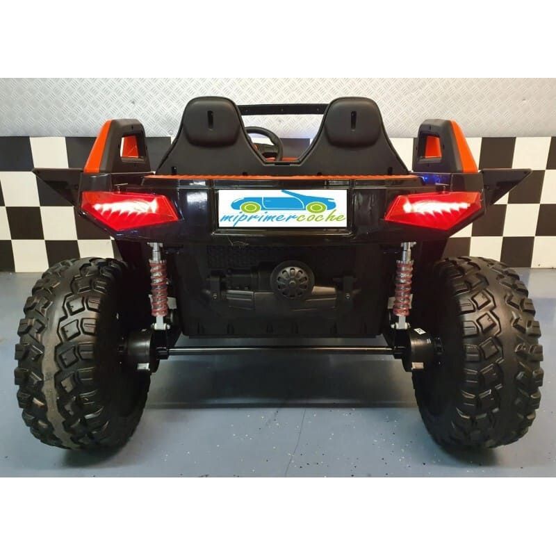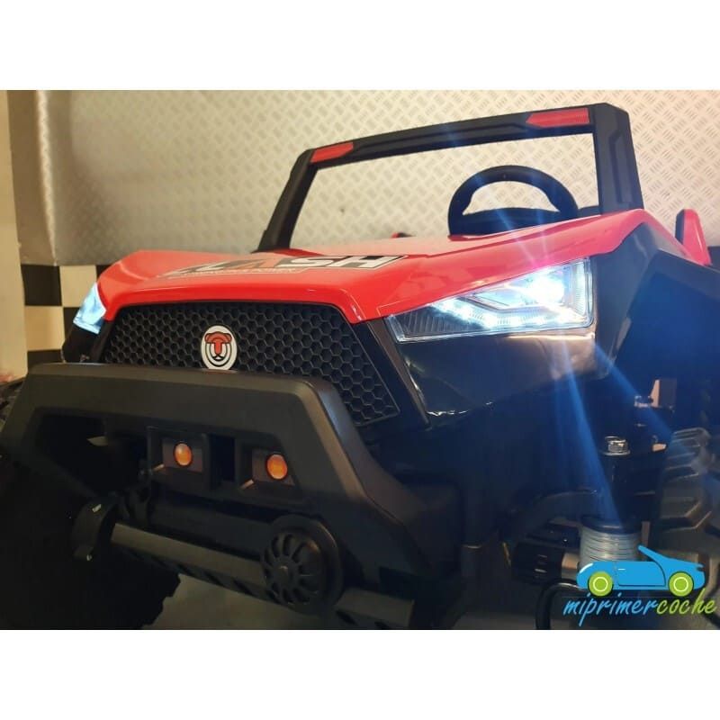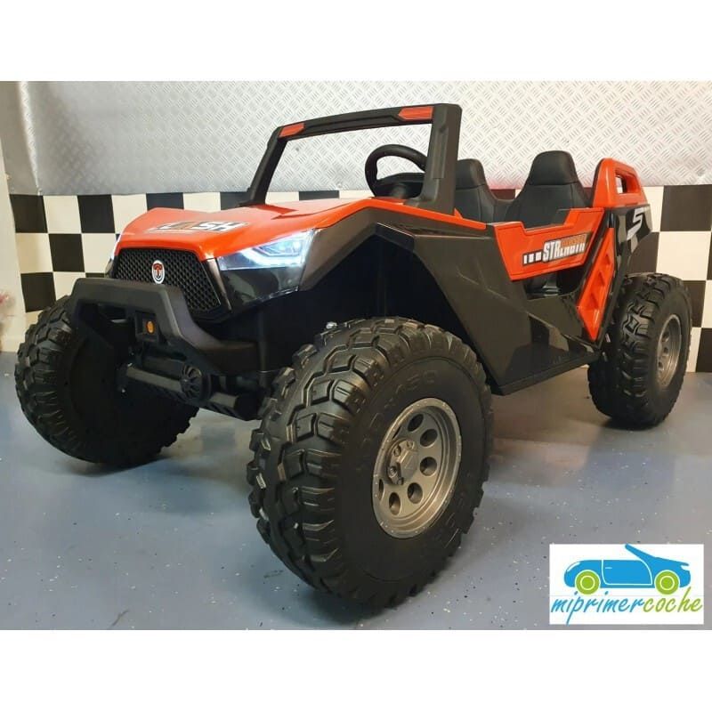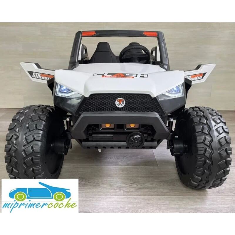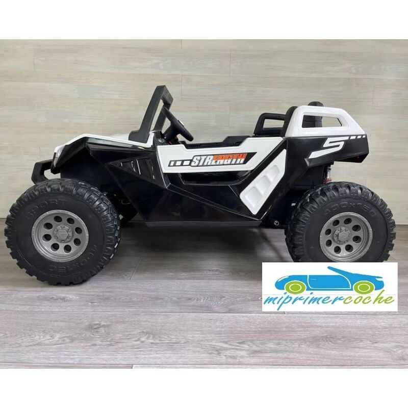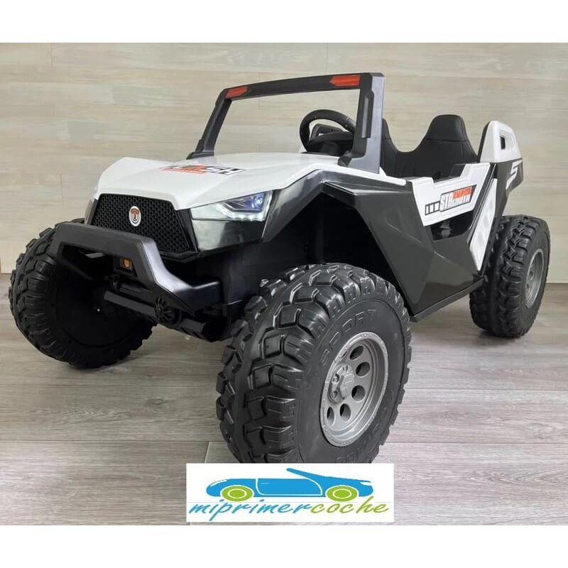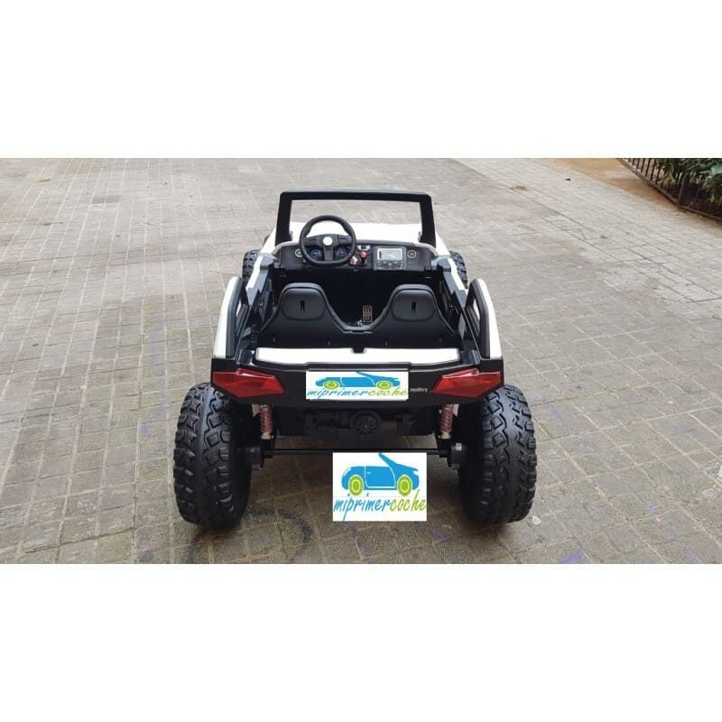 Un todoterreno que puede con todo , con 4 motores 24v , ruedas de caucho lo que le permite ir por todos los terrenos y capaz de soportar hasta 100 kilos .Equipado también con asiento muy espacioso acolchado en polipiel y con soportes extraíbles bajo el asiento , puede transportar hasta 4 niños a la vez . También este modelo dispone de pantalla MP4 y ventiladores que simulan el aire acondicionado .