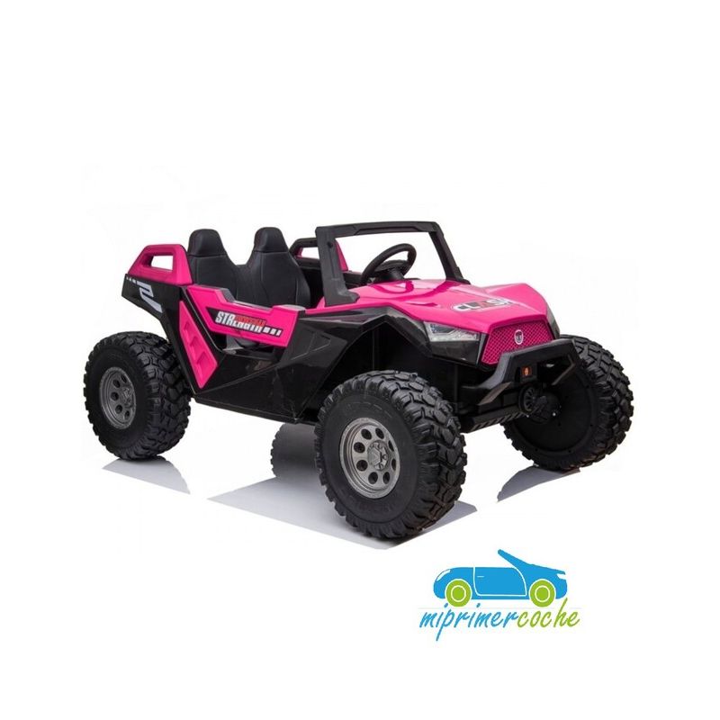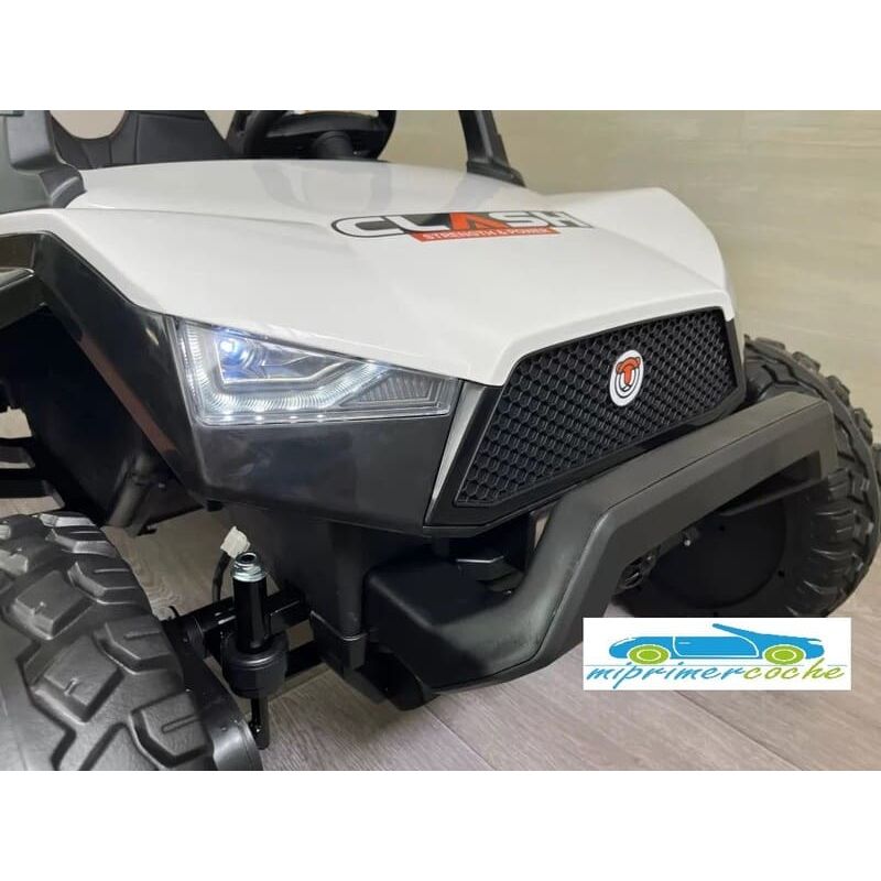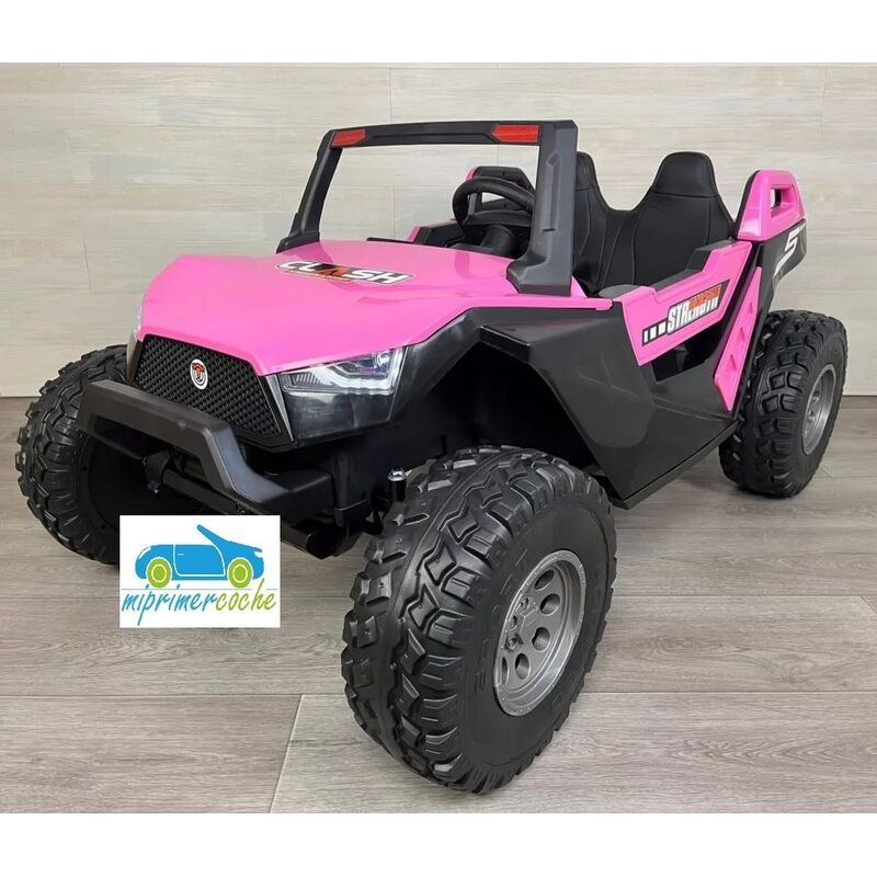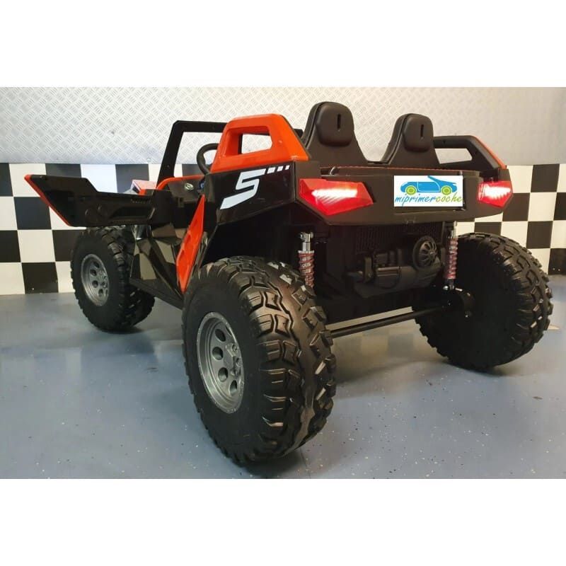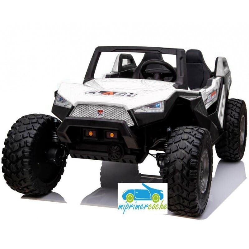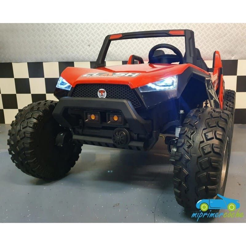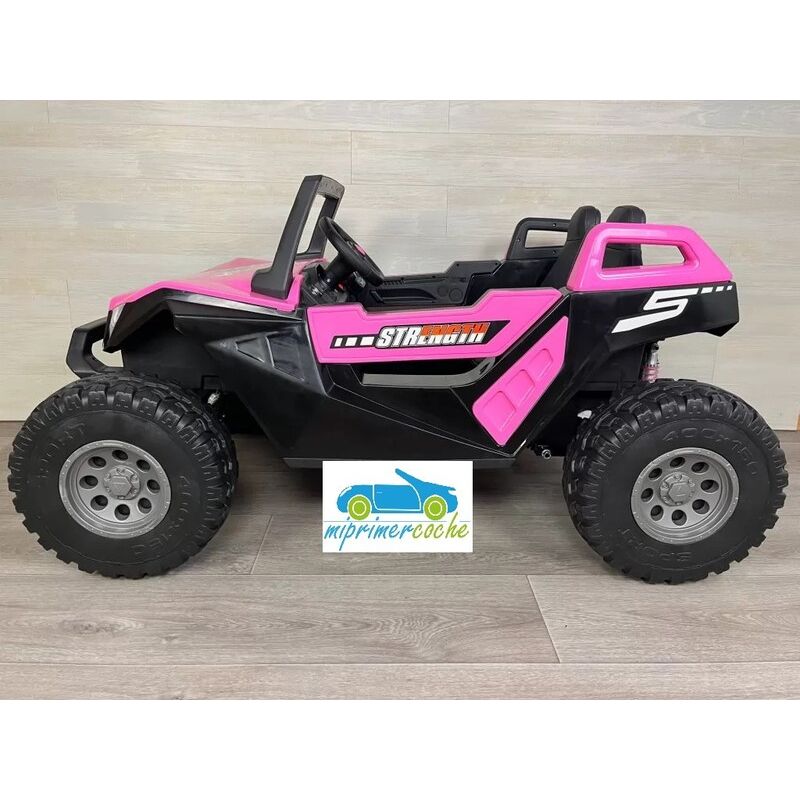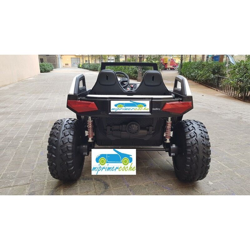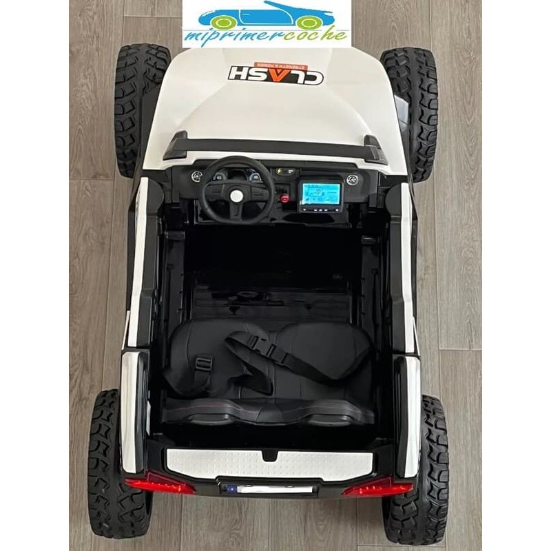 Un todoterreno que puede con todo , con 4 motores 24v , ruedas de caucho lo que le permite ir por todos los terrenos y capaz de soportar hasta 100 kilos .Equipado también con asiento muy espacioso acolchado en polipiel y con soportes extraíbles bajo el asiento , puede transportar hasta 4 niños a la vez . También este modelo dispone de pantalla MP4 y ventiladores que simulan el aire acondicionado .