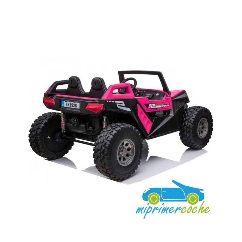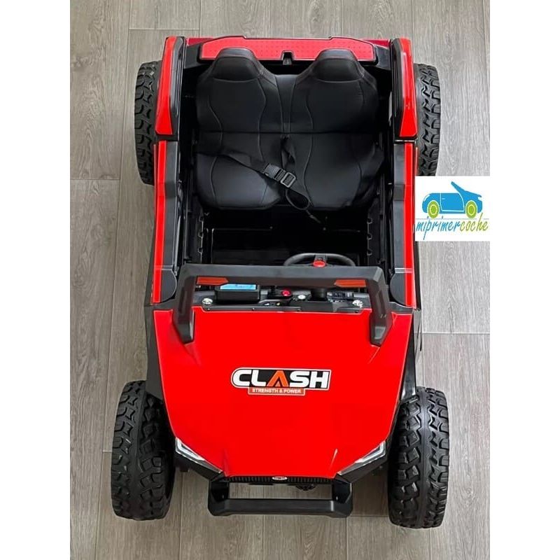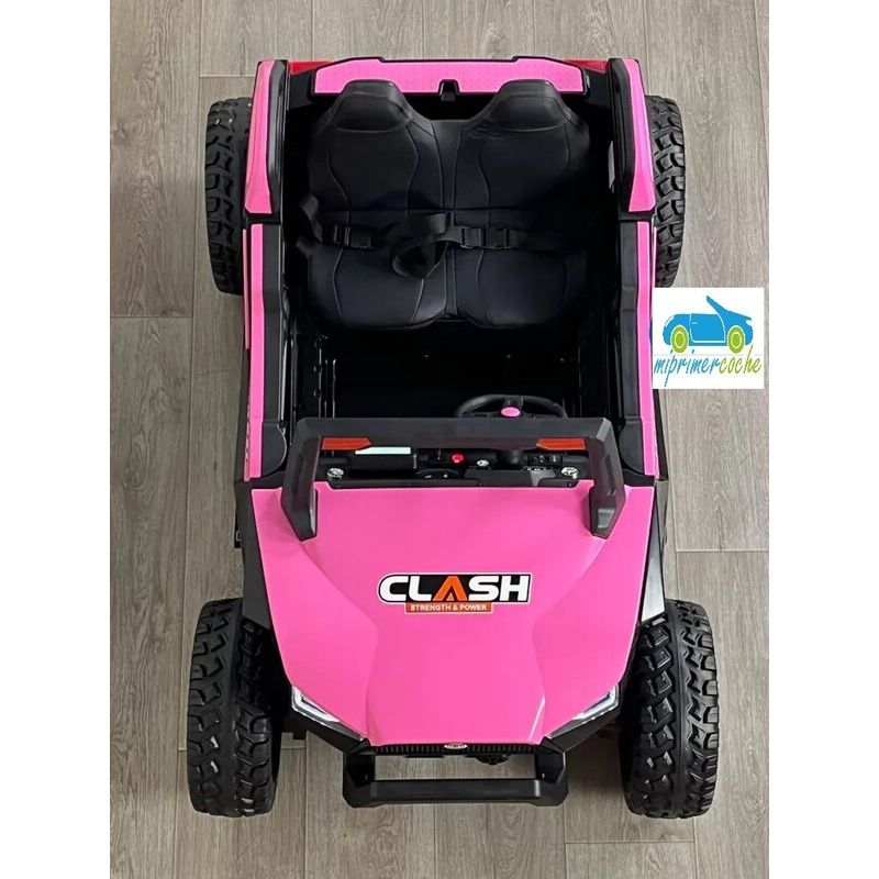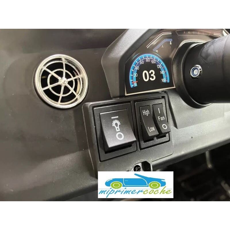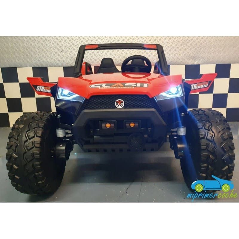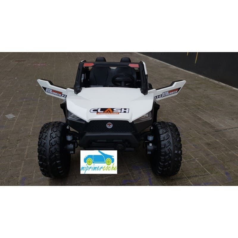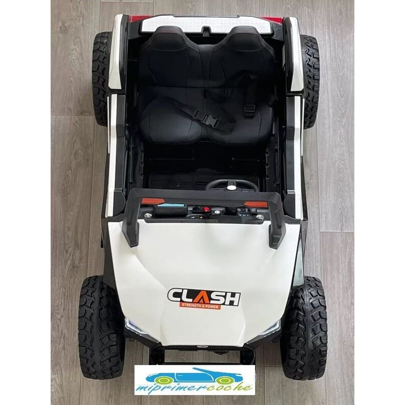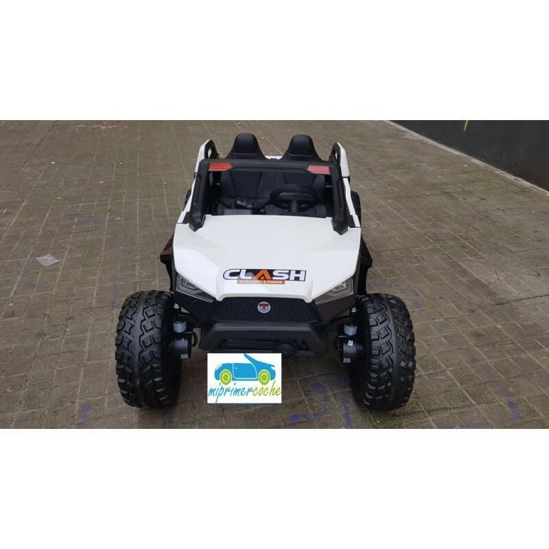 Un todoterreno que puede con todo , con 4 motores 24v , ruedas de caucho lo que le permite ir por todos los terrenos y capaz de soportar hasta 100 kilos .Equipado también con asiento muy espacioso acolchado en polipiel y con soportes extraíbles bajo el asiento , puede transportar hasta 4 niños a la vez . También este modelo dispone de pantalla MP4 y ventiladores que simulan el aire acondicionado .