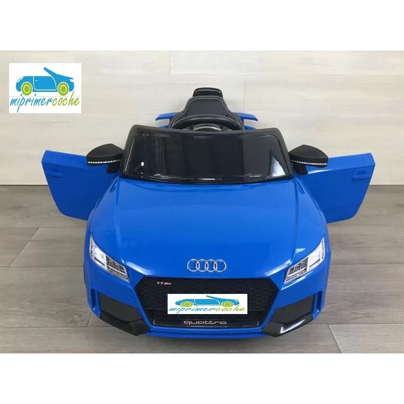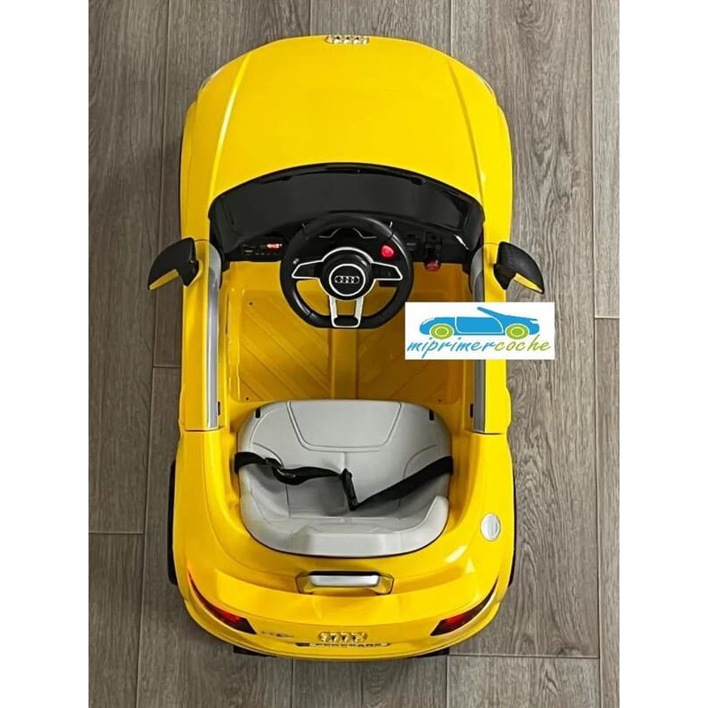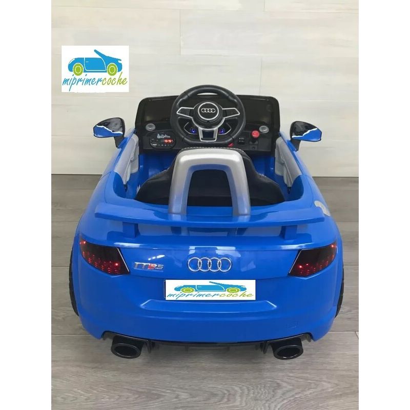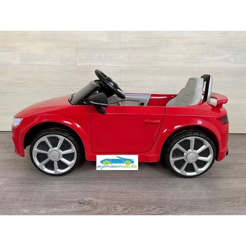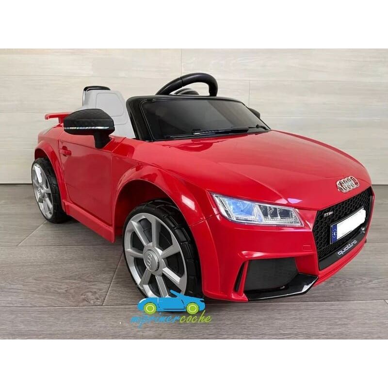 Este increíble coche eléctrico es la ultima innovación en coches electricos para niños: Audi TT RS, con LICENCIA OFICIAL AUDI , una replica exacta del Audi TT . Además incluye control remoto inteligente 2.4G por si los niños no pueden alcanzar el pedal o es demasiado joven para conducir por su cuenta, con un radio de acción de hasta 30 metros. Es un excelente coche bien construido, con un fácil montaje y plástico de alta calidad. Es un gran regalo para cualquier ocasión, Absolutamente impresionante y con el mismo diseño del auténtico AUDI TT con todas las insignias, las luces LED que causan sensación, reproductor de MP3 y USB de entrada con regulador de volumen, puertas que se abren ,salpicadero iluminado y todas las demás funcionalidades que su niño pueda soñar. Incluye el cargador y todos los accesorios necesarios.