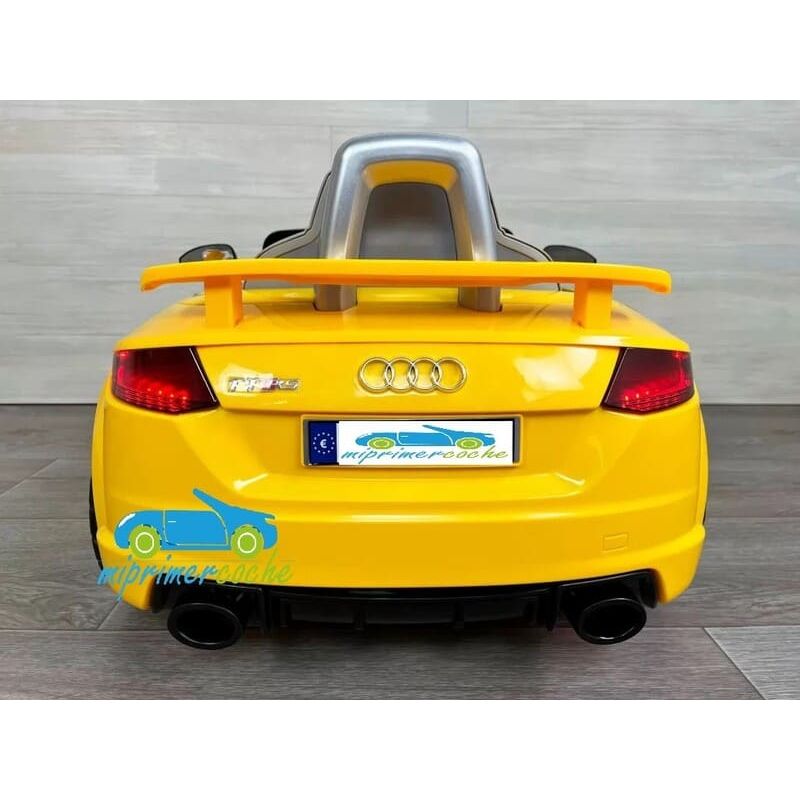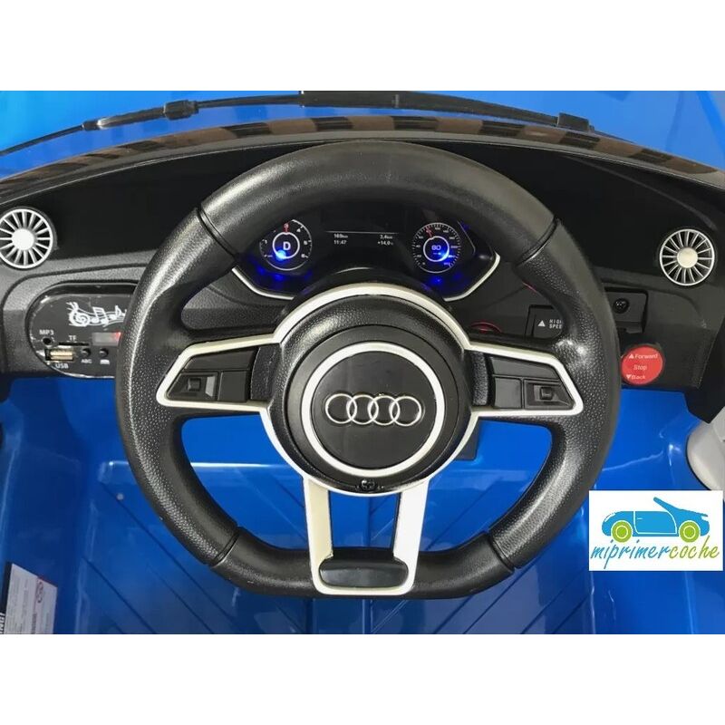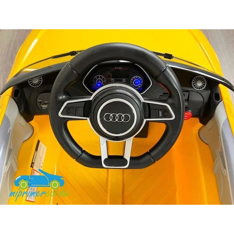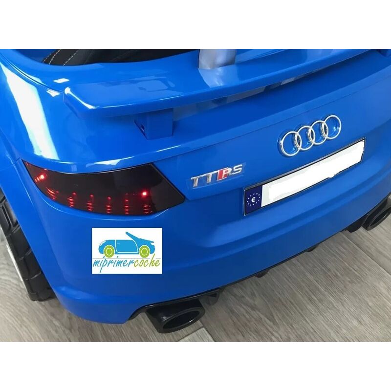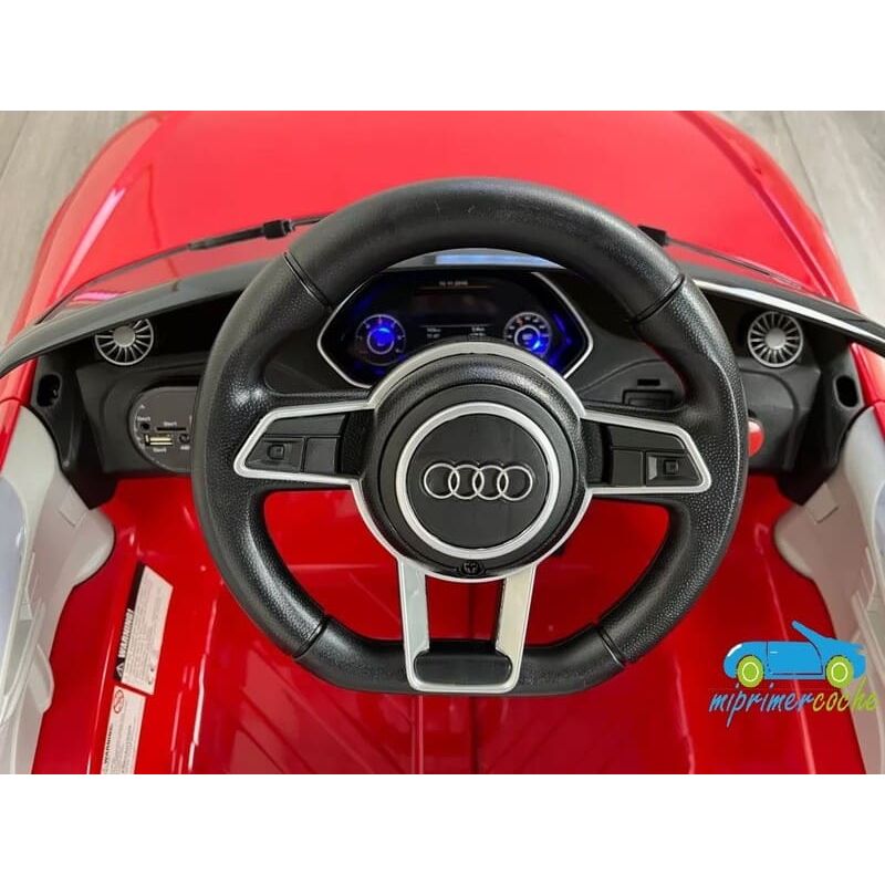 Este increíble coche eléctrico es la ultima innovación en coches electricos para niños: Audi TT RS, con LICENCIA OFICIAL AUDI , una replica exacta del Audi TT . Además incluye control remoto inteligente 2.4G por si los niños no pueden alcanzar el pedal o es demasiado joven para conducir por su cuenta, con un radio de acción de hasta 30 metros. Es un excelente coche bien construido, con un fácil montaje y plástico de alta calidad. Es un gran regalo para cualquier ocasión, Absolutamente impresionante y con el mismo diseño del auténtico AUDI TT con todas las insignias, las luces LED que causan sensación, reproductor de MP3 y USB de entrada con regulador de volumen, puertas que se abren ,salpicadero iluminado y todas las demás funcionalidades que su niño pueda soñar. Incluye el cargador y todos los accesorios necesarios.