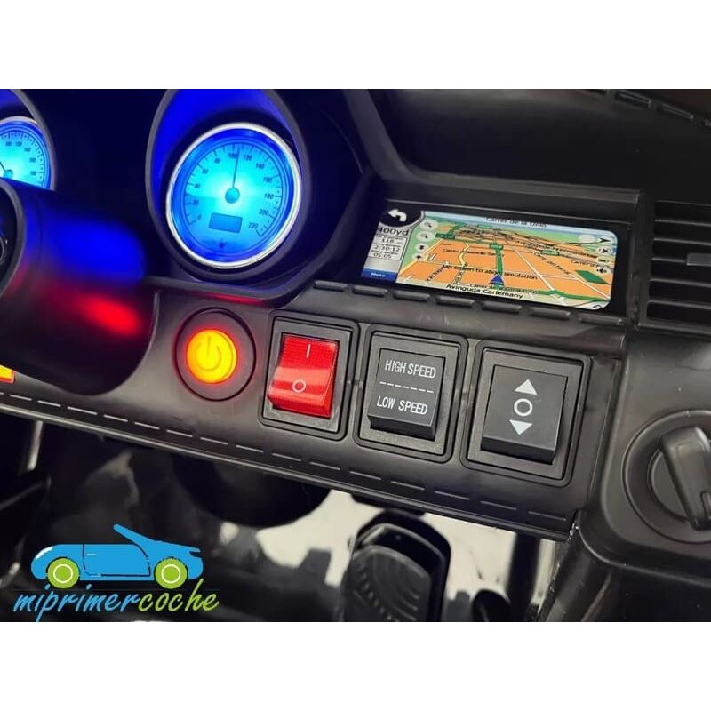 - el coche puede ser controlado por el padre gracias al mando distancia 2.4G con funciones de marcha hacia delante / atrás , girar izquierda / derecha , selector de velocidades y botón de paro de emergencia .