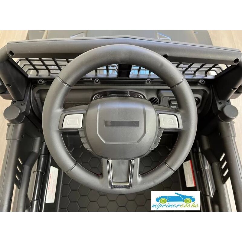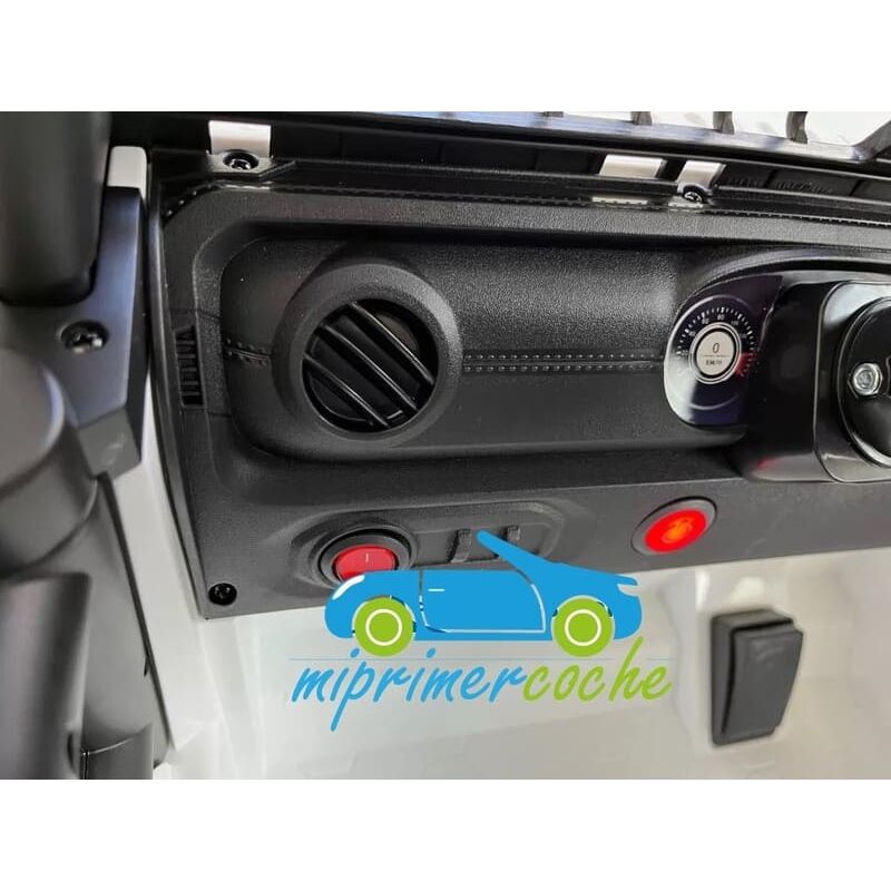 · en el volante del coche eléctrico se encuentra botones de claxon y música pregrabada