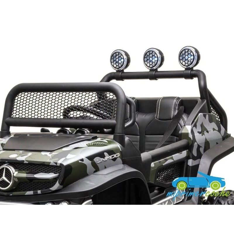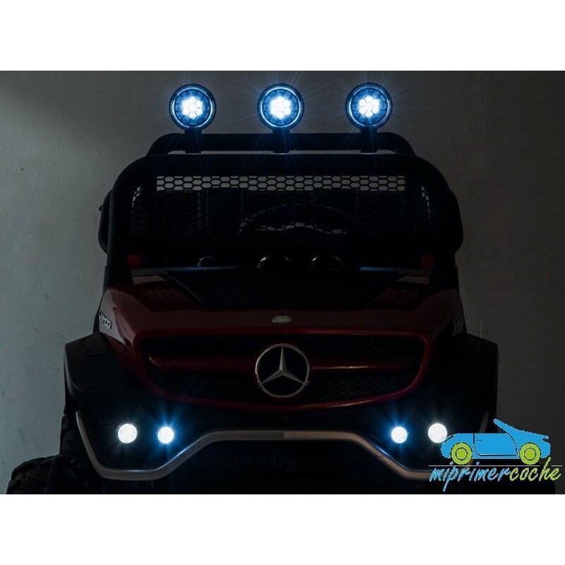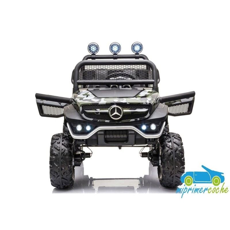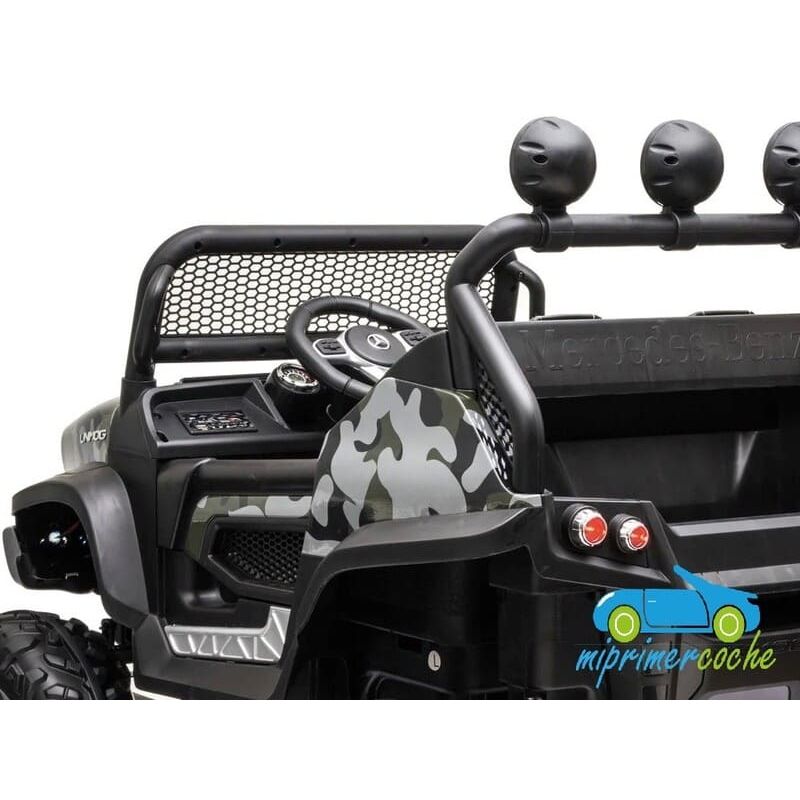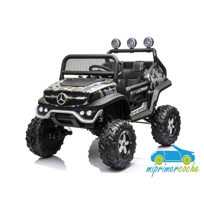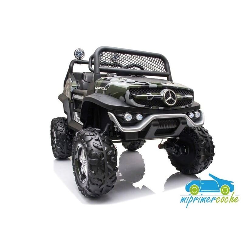 Coche Eléctrico Infantil MERCEDES UNIMOG 12v con 4 motores , ruedas de caucho ,mando distancia 2.4G , suspensión en las ruedas traseras y asiento con terminación en polipiel