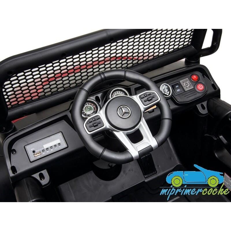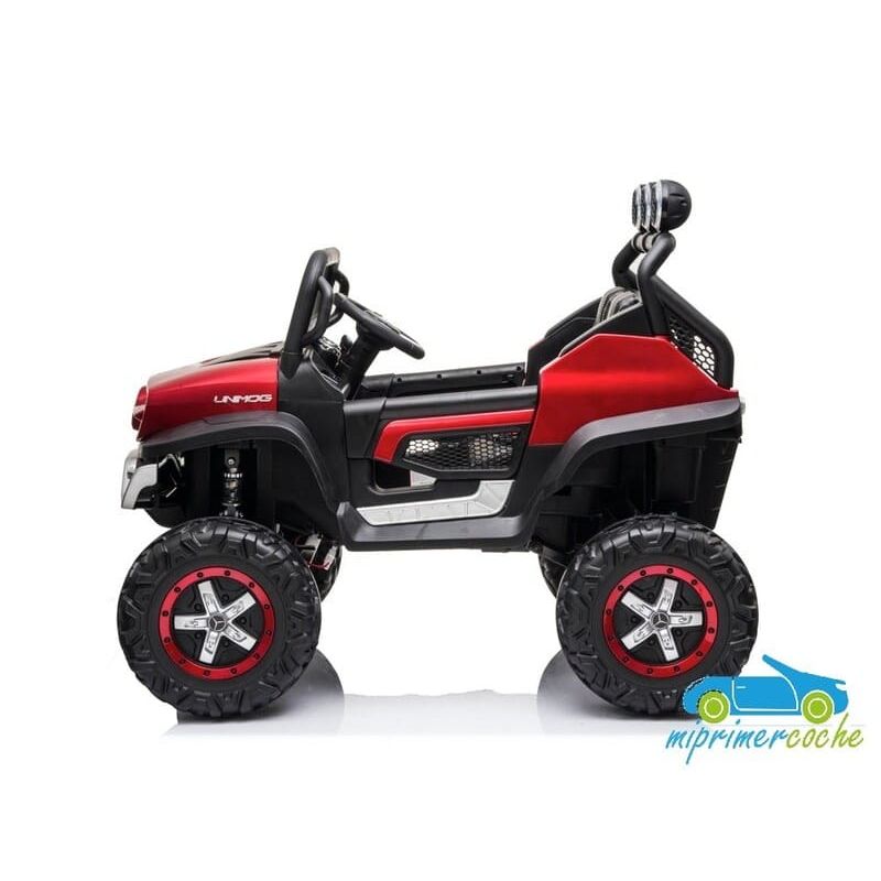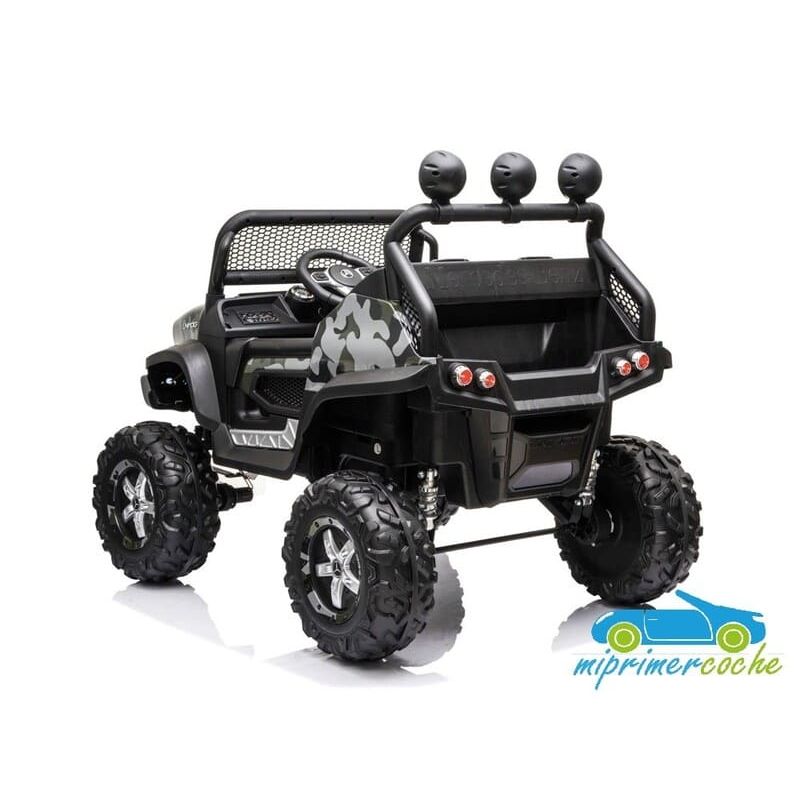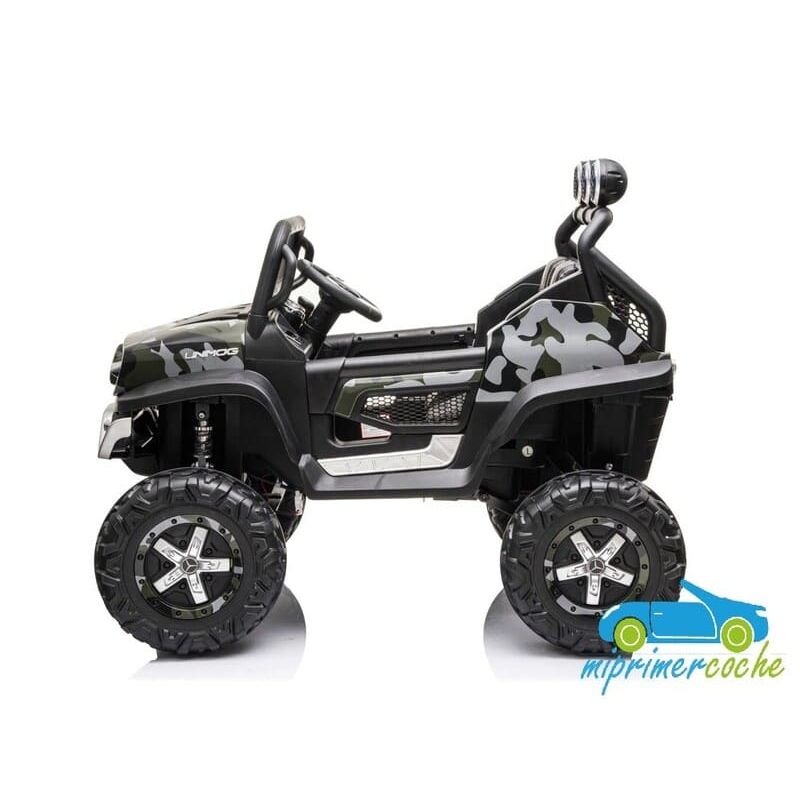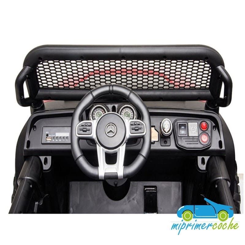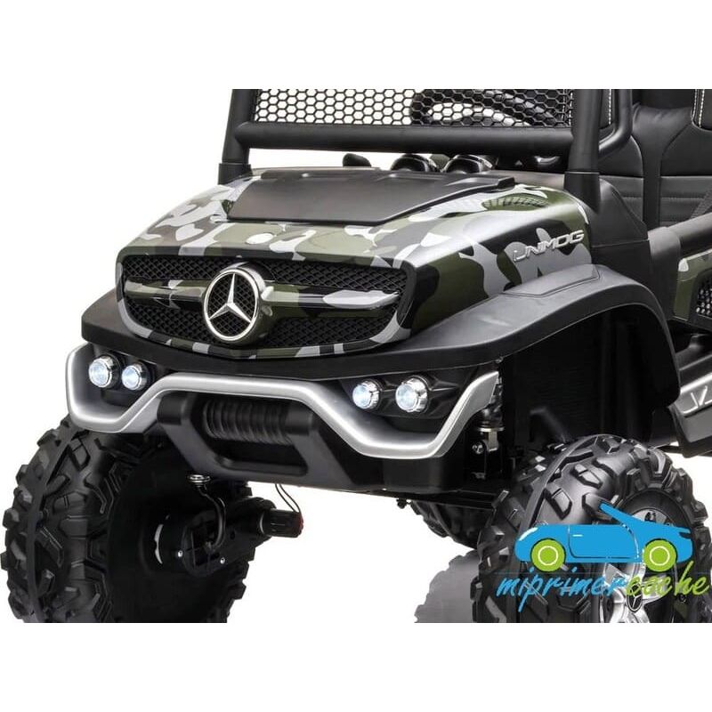 Coche Eléctrico Infantil MERCEDES UNIMOG 12v con 4 motores , ruedas de caucho ,mando distancia 2.4G , suspensión en las ruedas traseras y asiento con terminación en polipiel