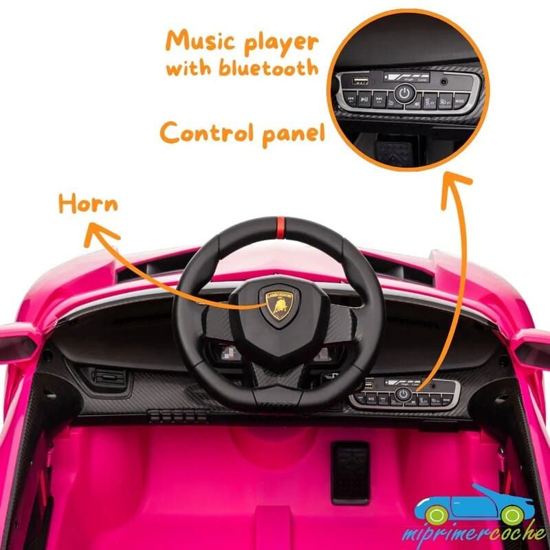 · en el volante del coche eléctrico se encuentra botones de claxon y música pregrabada