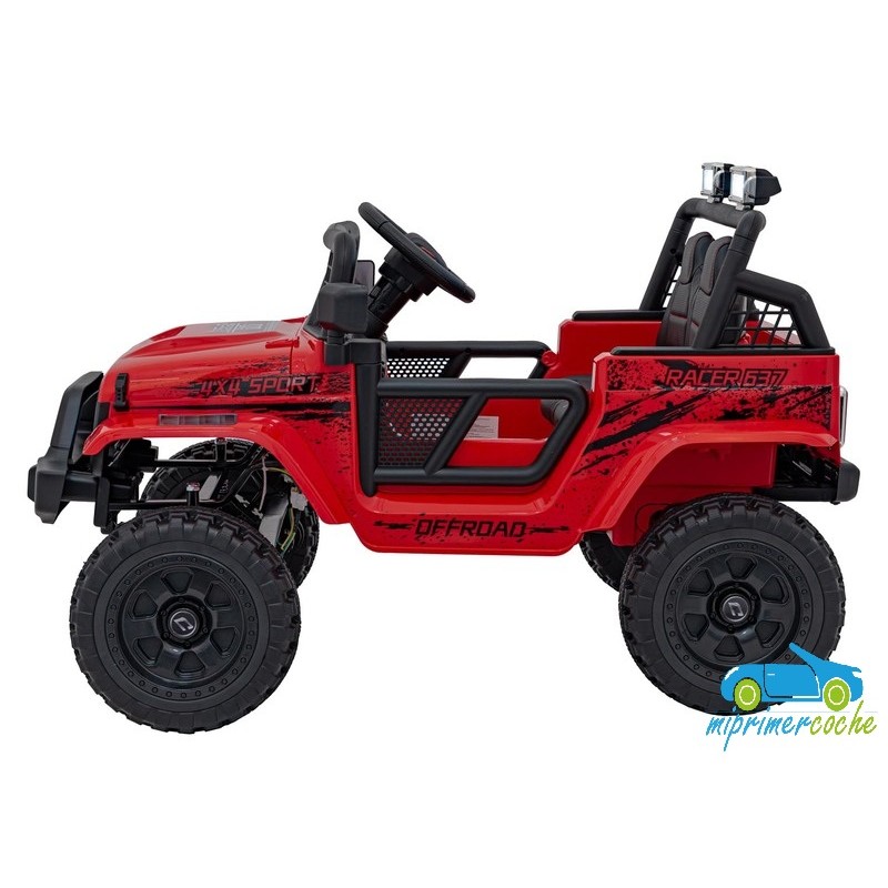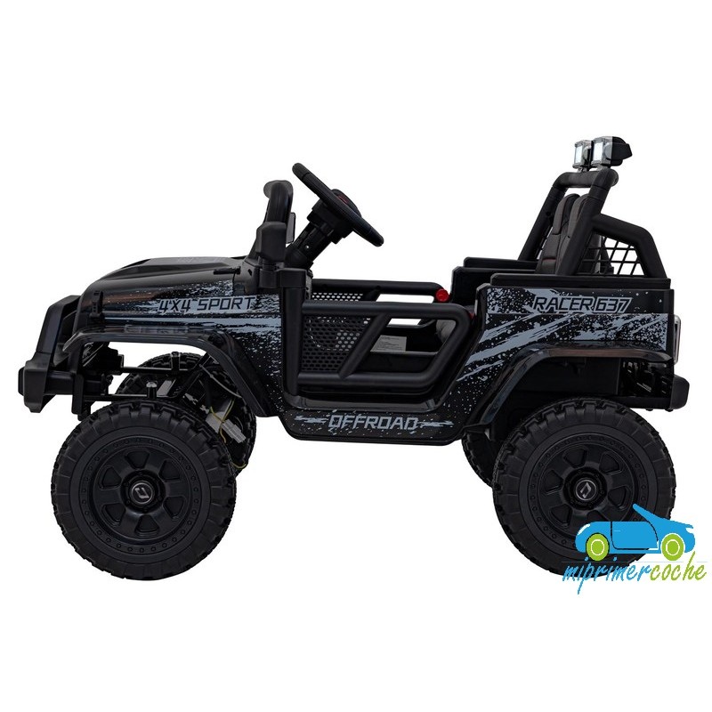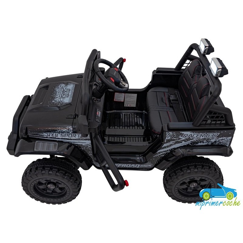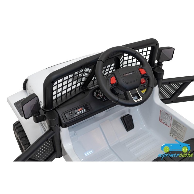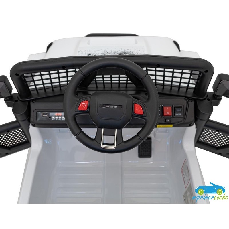 El coche eléctrico para niños TODOTERRENO SPORT 4X4 es un modelo equipado con ruedas de caucho , asiento en polipiel , mando distancia parental , conector USB , MP3 , bluetooth , luces Led . También dispone de 3 velocidades con el mando , 4 motores 12v , puertas que se abren , podemos decir un coche de verdad pero a una escala reducida .