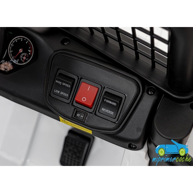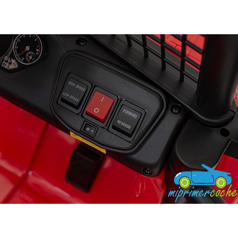 - el coche puede ser controlado por el padre gracias al mando distancia 2.4G con funciones de marcha hacia delante / atrás , girar izquierda / derecha , selector de velocidades y botón de paro de emergencia .