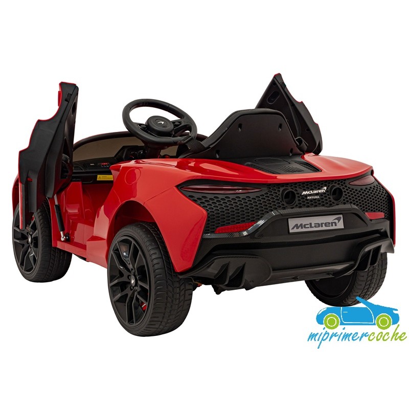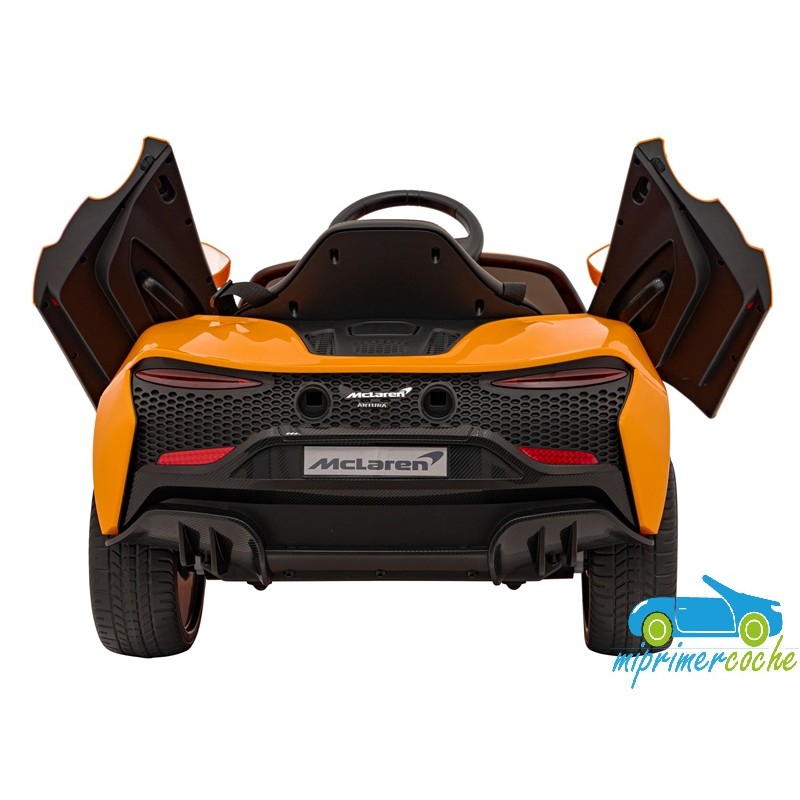 El coche eléctrico infantil Mc Laren Artura es un deportivo muy con Licencia Oficial de la marca . Es un coche con un acabado excelente con la calidad que se puede esperar de un coche licenciado por una marca tan lujosa , un diseño con trazos deportivos , una línea cuidada , que destaca por la apertura de las puertas en forma de gaviota , permitiendo dejar las puertas en lo mas alto , con total seguridad , gracias a los amortiguadores . Con una apariencia robusta y un interior deportivo , equipado con asiento en piel , ruedas de caucho ...este modelo es una gran elección de compra .