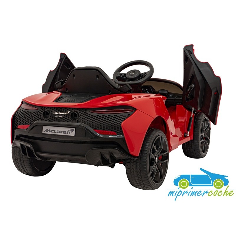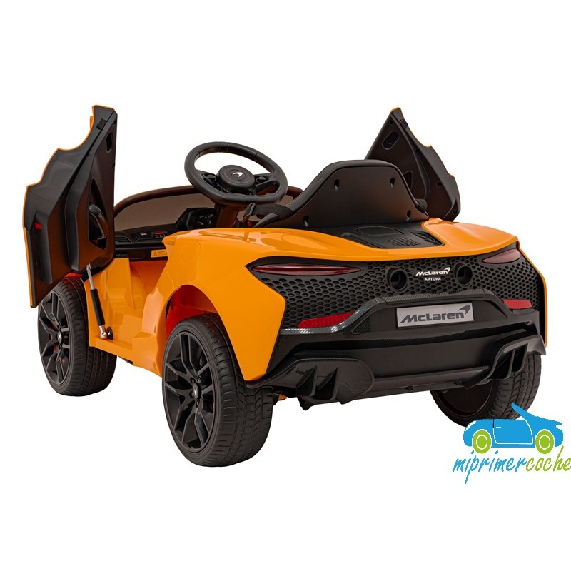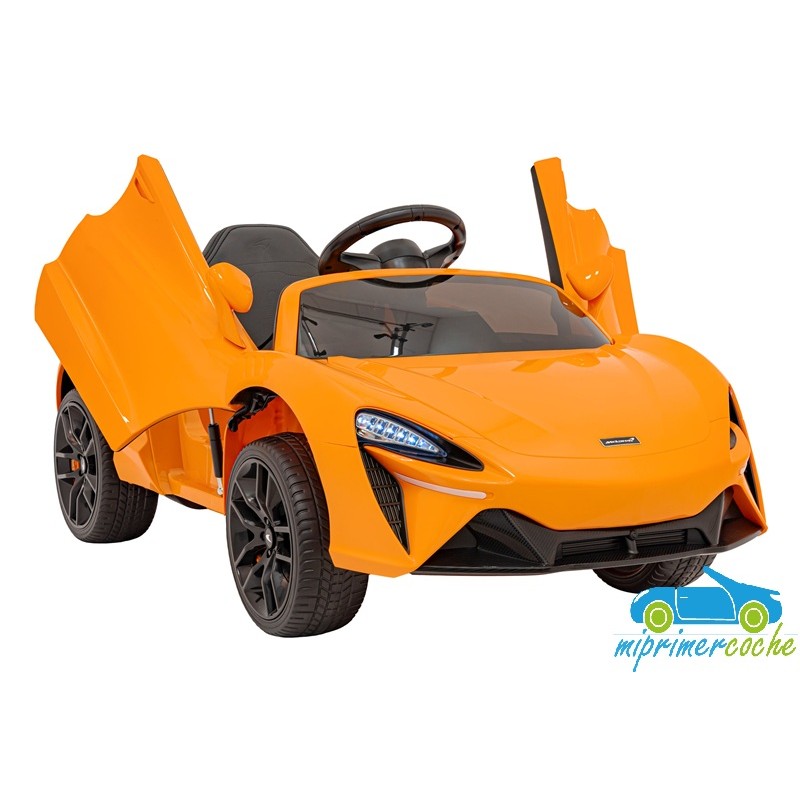 El coche eléctrico infantil Mc Laren Artura es un deportivo muy con Licencia Oficial de la marca . Es un coche con un acabado excelente con la calidad que se puede esperar de un coche licenciado por una marca tan lujosa , un diseño con trazos deportivos , una línea cuidada , que destaca por la apertura de las puertas en forma de gaviota , permitiendo dejar las puertas en lo mas alto , con total seguridad , gracias a los amortiguadores . Con una apariencia robusta y un interior deportivo , equipado con asiento en piel , ruedas de caucho ...este modelo es una gran elección de compra .