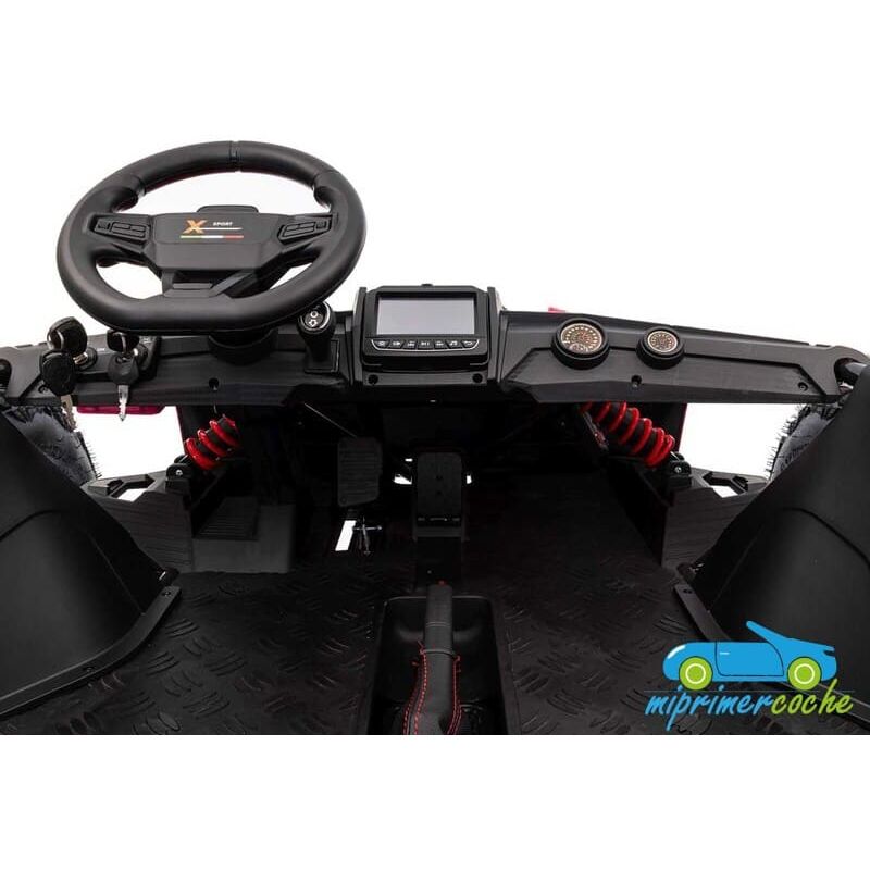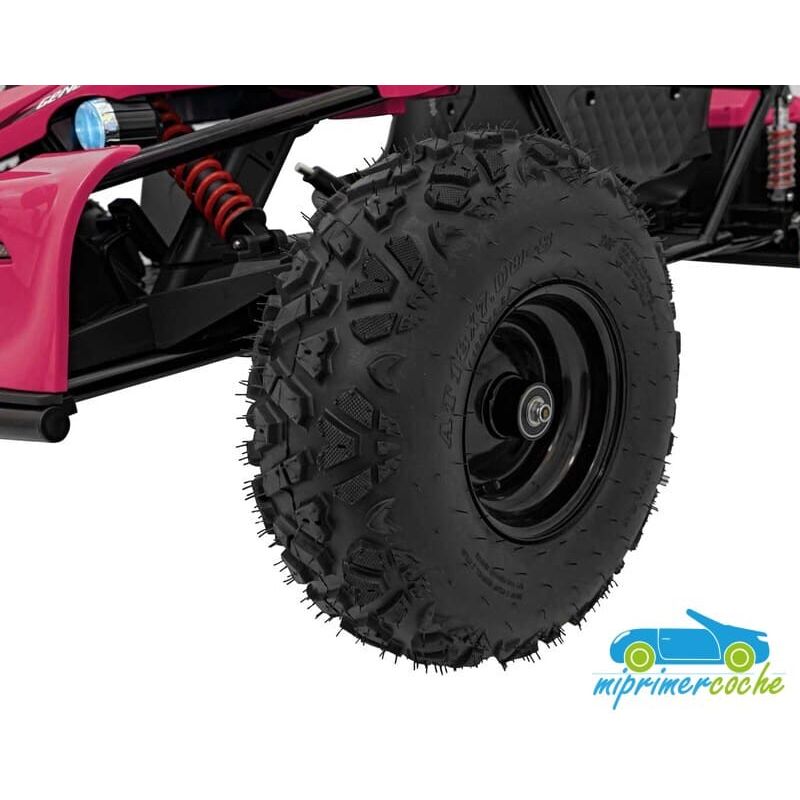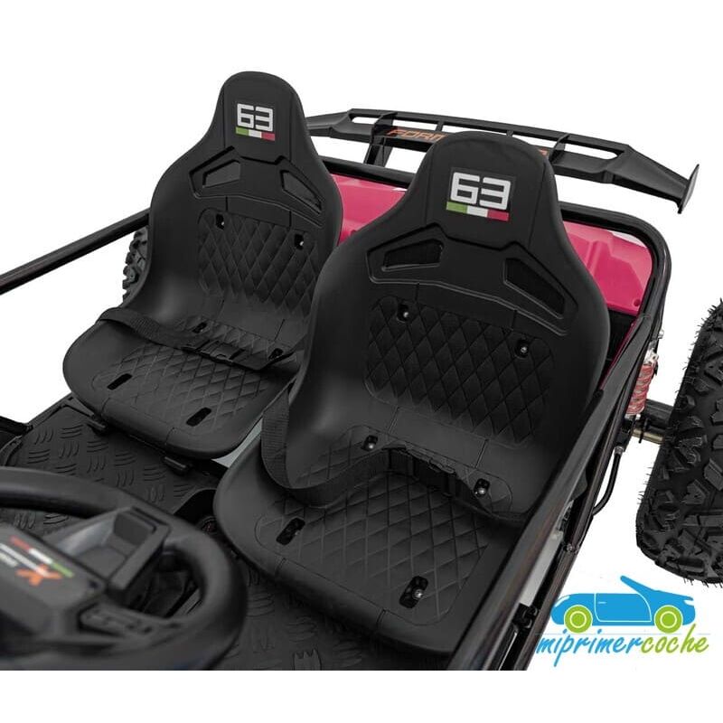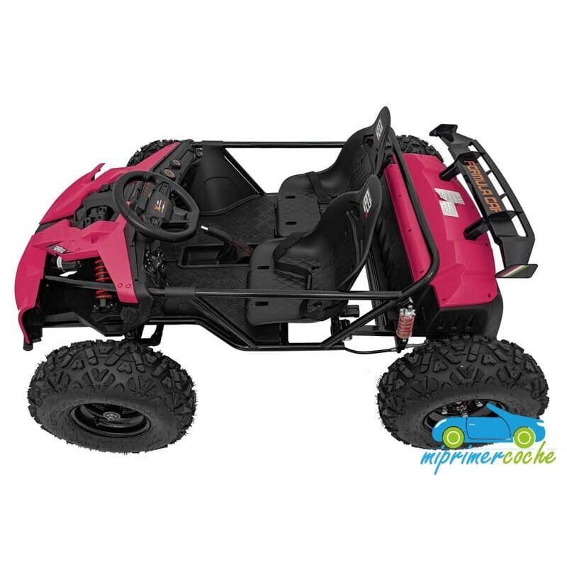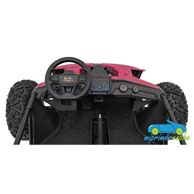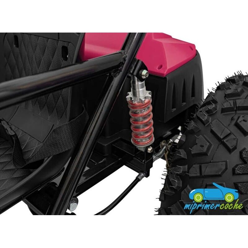 Este buggy impone respeto por su tamaño y su aspecto robusto, asemejándose a un auténtico vehículo todoterreno. La cabina espaciosa y de diseño ergonómico ofrece la máxima comodidad tanto para niños como para pasajeros adultos. Los dos pedales utilizados –acelerador y freno– y los frenos de disco en el eje trasero garantizan un control total del vehículo.