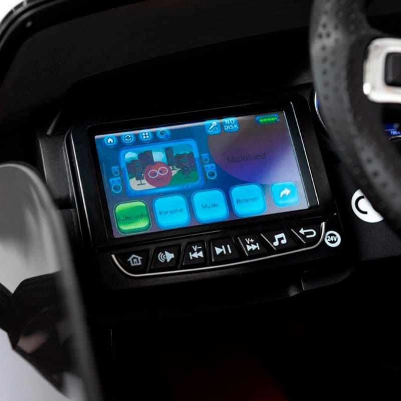 - el coche puede ser controlado por el padre gracias al mando distancia 2.4G con funciones de marcha hacia delante / atrás , girar izquierda / derecha , selector de velocidades y botón de paro de emergencia .