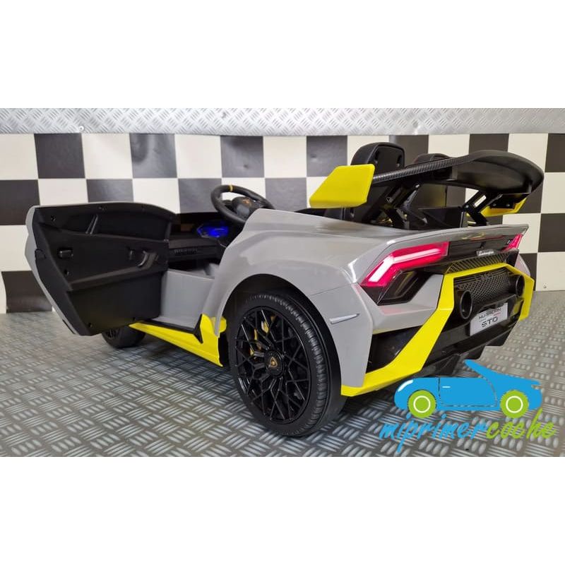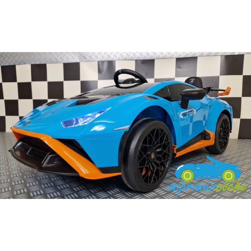El coche eléctrico infantil LAMBORGHINI STO DRIFT 12V es un coche con un diseño realista , equipado con 2 motores 12v de alta prestación y con ruedas traseras de plástico , gracias a estas prestaciones es capaz de realizar derrape a una velocidad de 8 km/h .