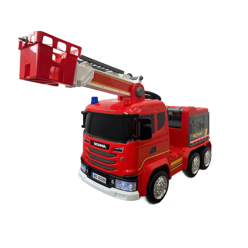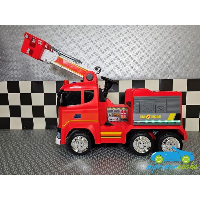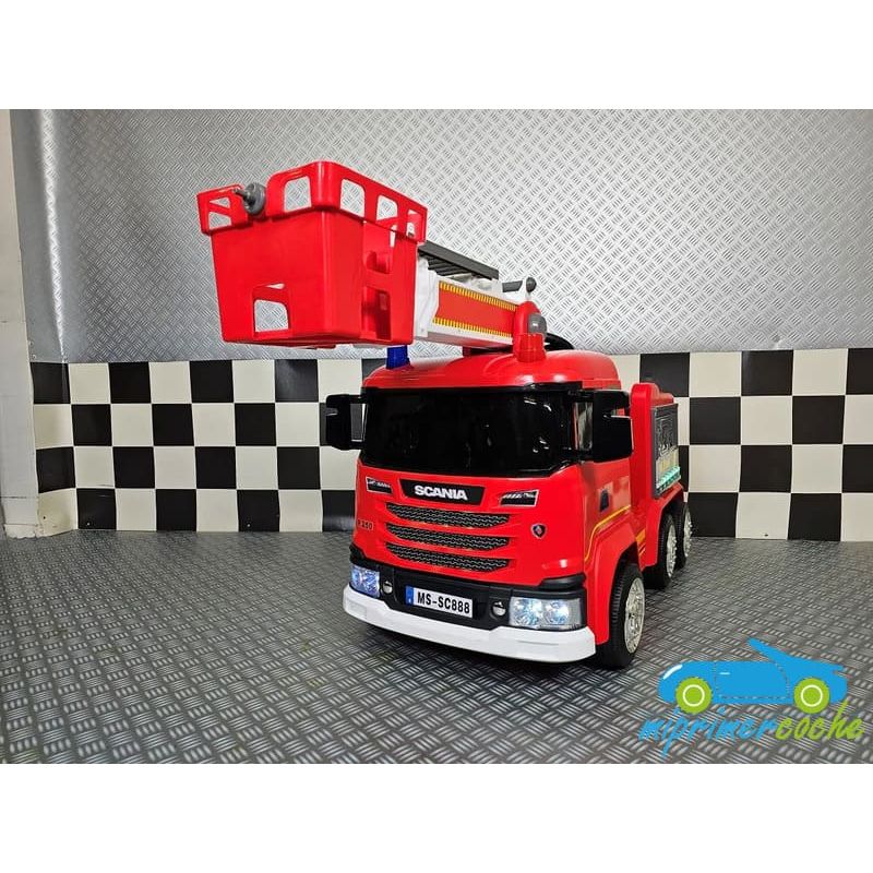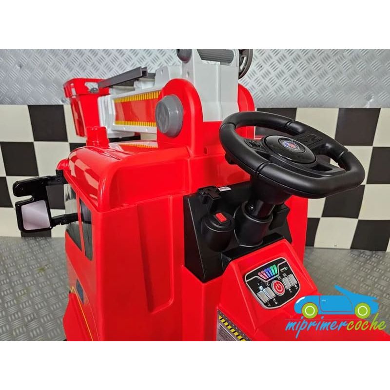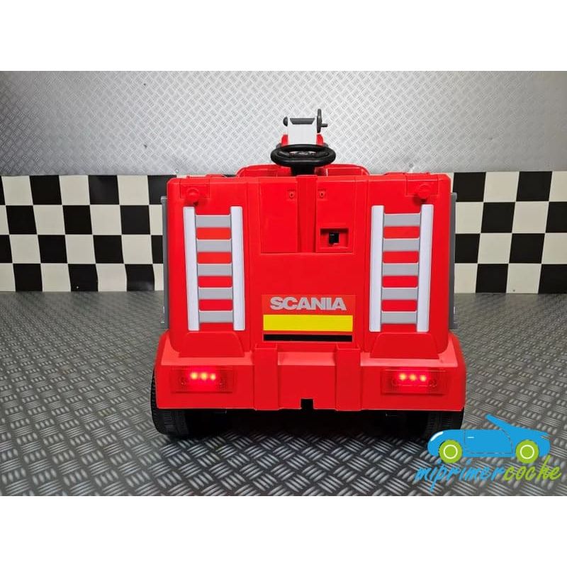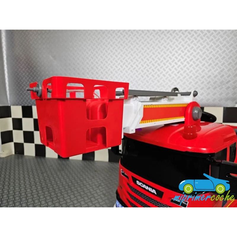 Camión Grúa Eléctrico Infantil SCANIA BOMBEROS una plaza , 4 motores 12V , mando distancia 2.4G , bluetooth .