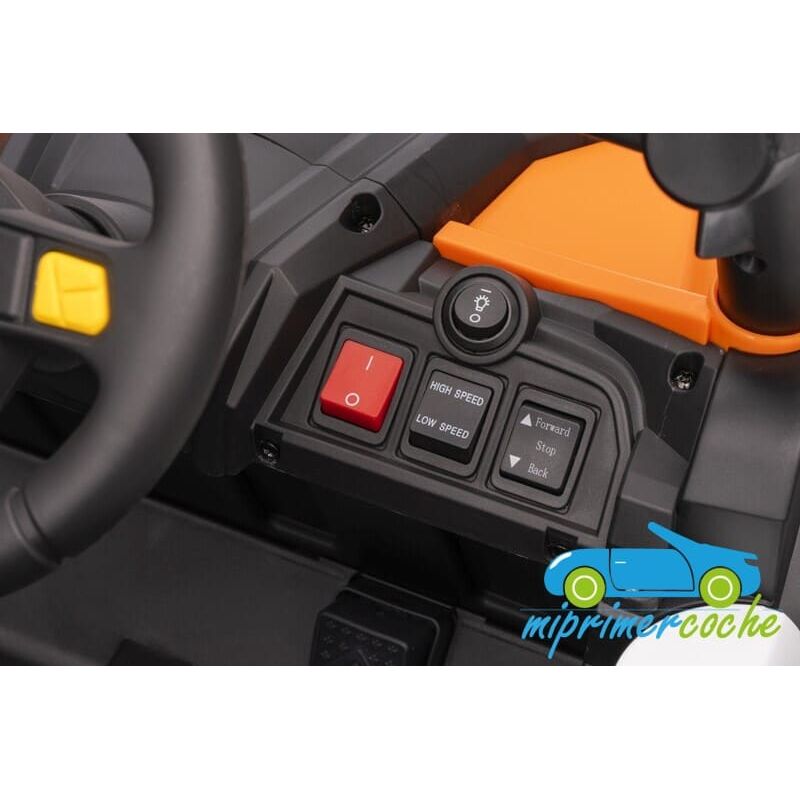 · mando parental 2.4G con controles de marchas ( hacia adelante y hacia atrás ) control de dirección ( izquierda y derecha ) control de velocidades ( 3 velocidades )