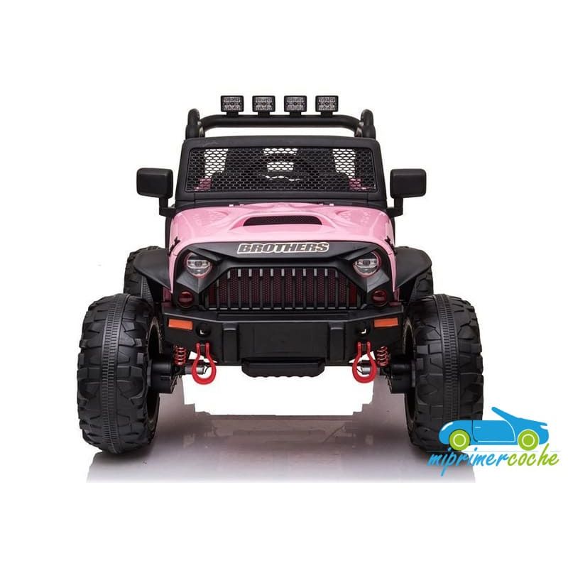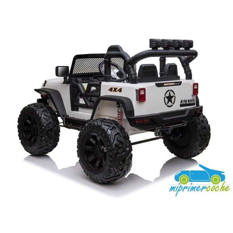 Un todoterreno que puede con todo , con 2 motores 200w , ruedas de caucho , lo que le permite ir por todos los terrenos y capaz de soportar hasta 60 kilos .Equipado también con asiento muy espacioso acolchado en polipiel , es un coche de grandes dimensiones .