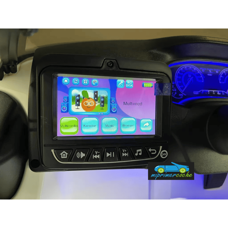 · en el volante del coche eléctrico se encuentra botones de claxon y música pregrabada
