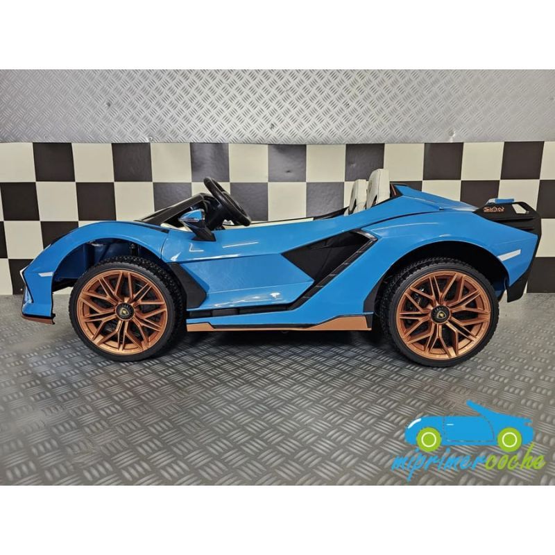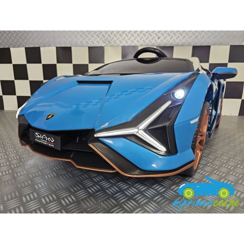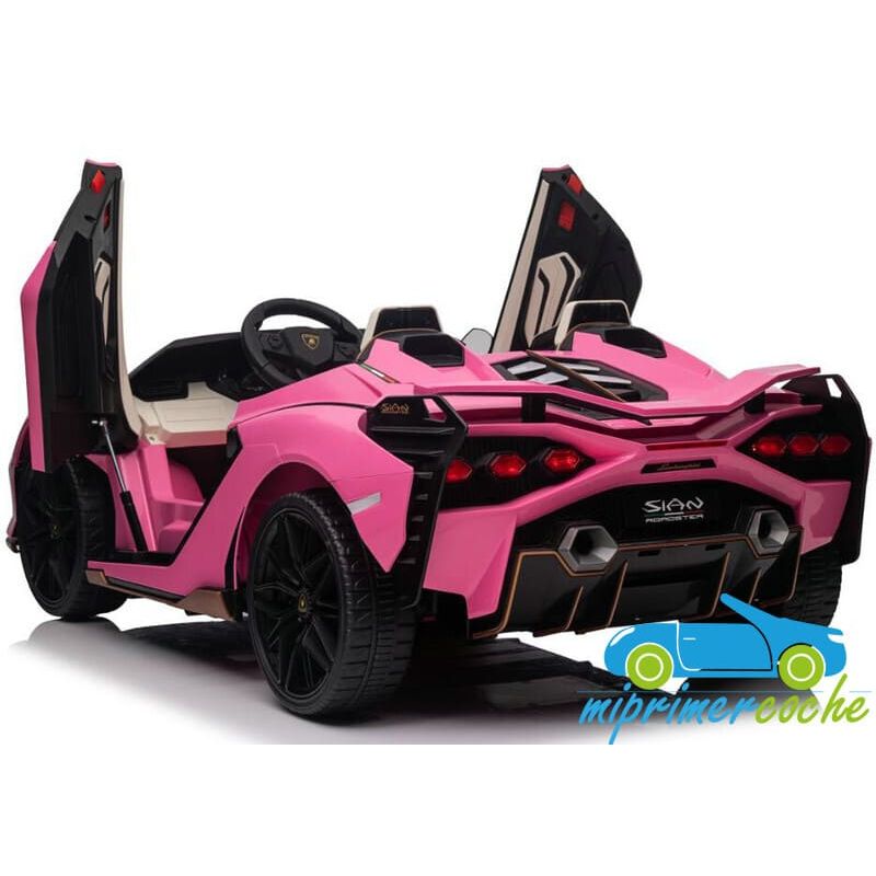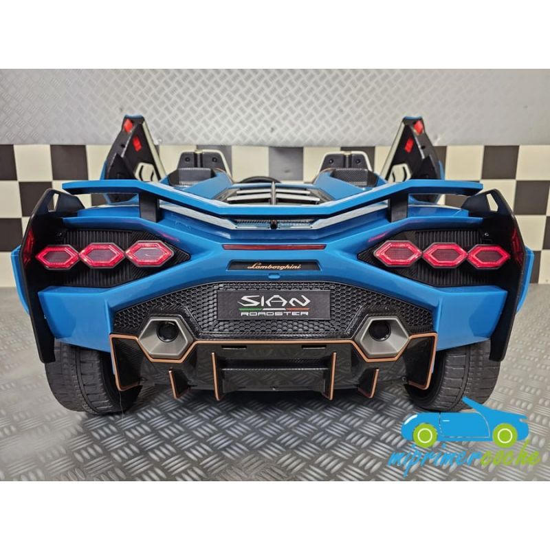 Coche eléctrico para niños LAMBORGHINI SIAN 12V 2 plazas con mando parental 2.4G, ruedas de caucho, asiento en piel, 2 motores 12V, equipo de sonido, suspensión trasera.