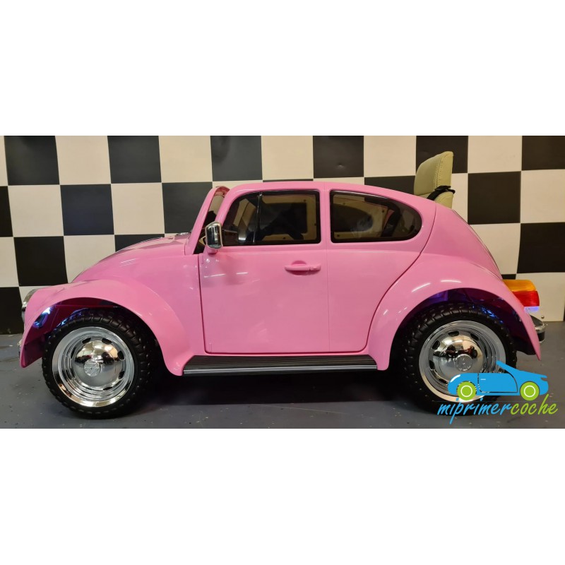 Coche Eléctrico Infantil VOLKSWAGEN BEETLE CLASSIC 12v con 2 motores, mando distancia 2.4G, ruedas de caucho, asiento en eco piel, equipo de sonido, luces.