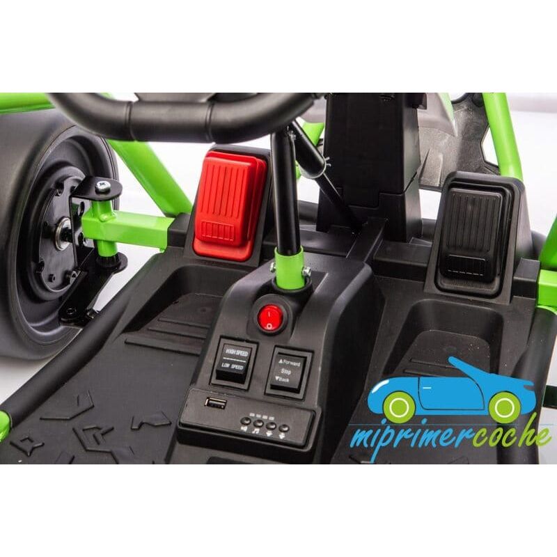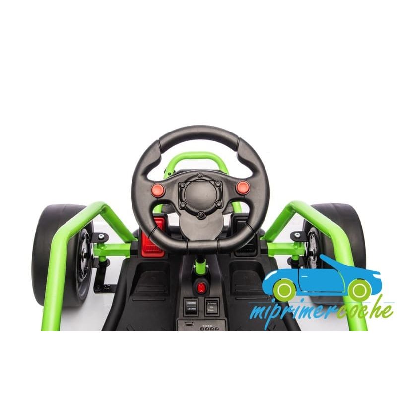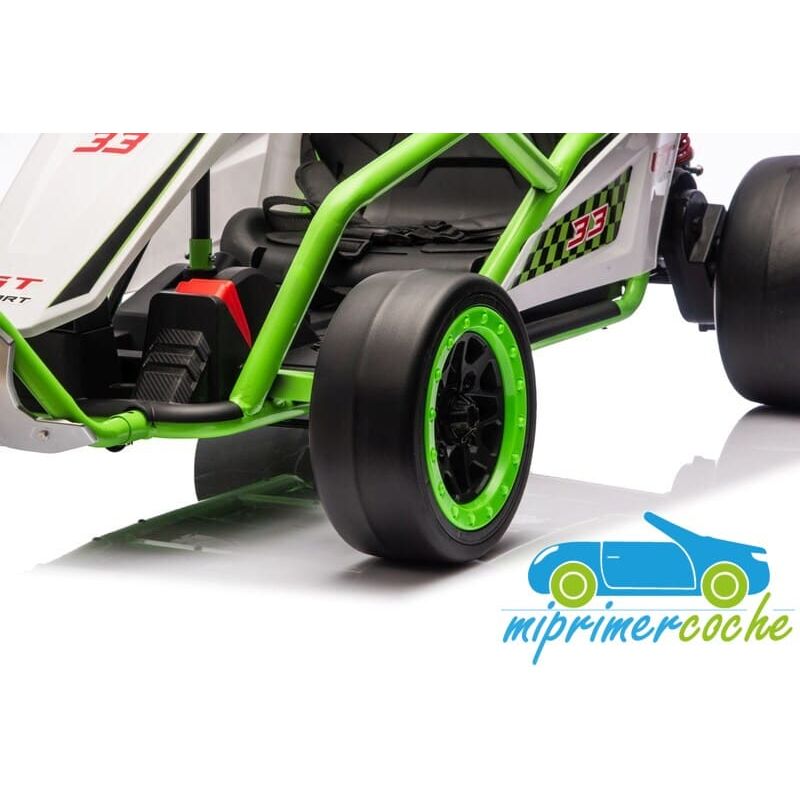 Coche eléctrico infantil DRIFT KART TORNADO 24V con más potencia capaz de alcanzar 13 km/h para realizar derrape, con ruedas especiales para derrapes, 2 motores 24v, equipo de música, pedal de freno y pedal acelerador