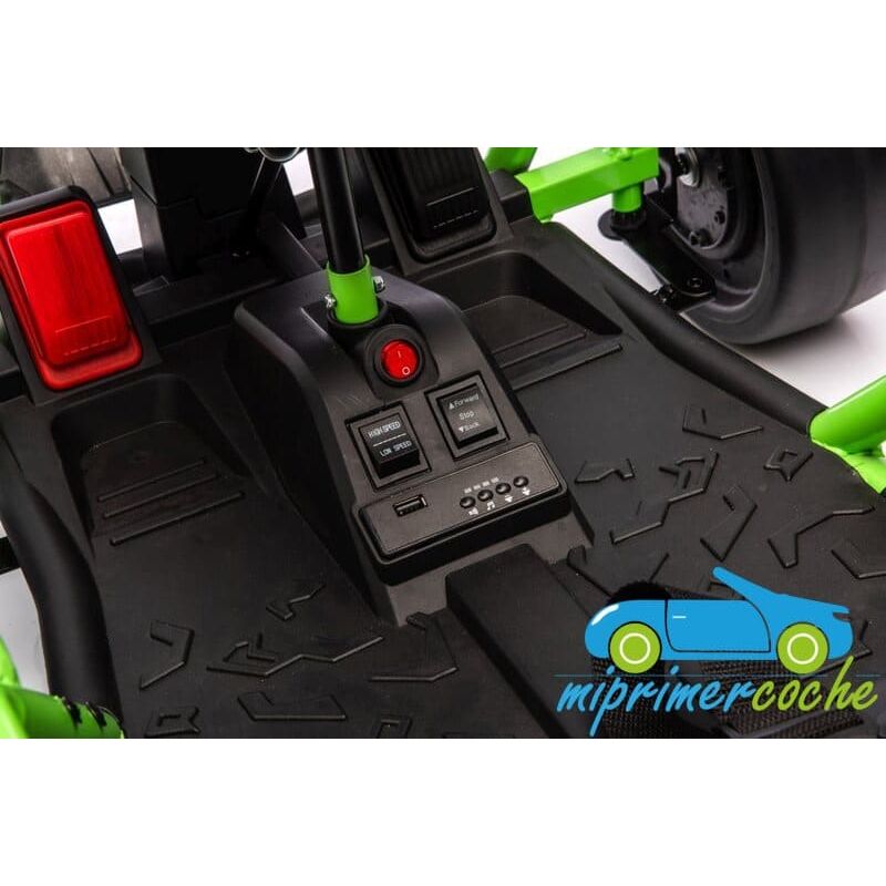 Coche eléctrico infantil DRIFT KART TORNADO 24V con más potencia capaz de alcanzar 13 km/h para realizar derrape, con ruedas especiales para derrapes, 2 motores 24v, equipo de música, pedal de freno y pedal acelerador