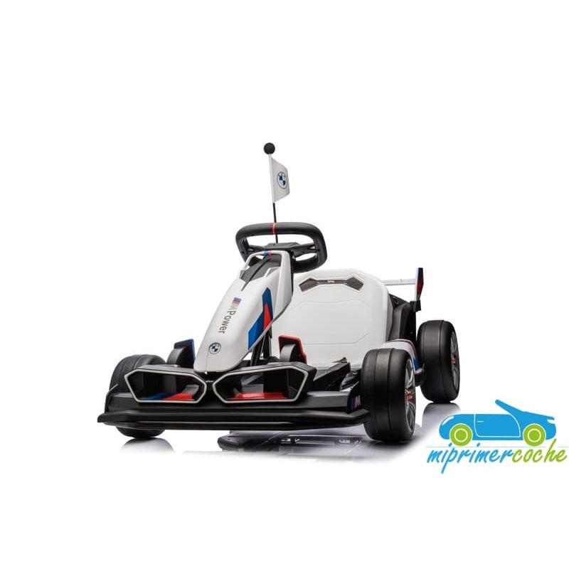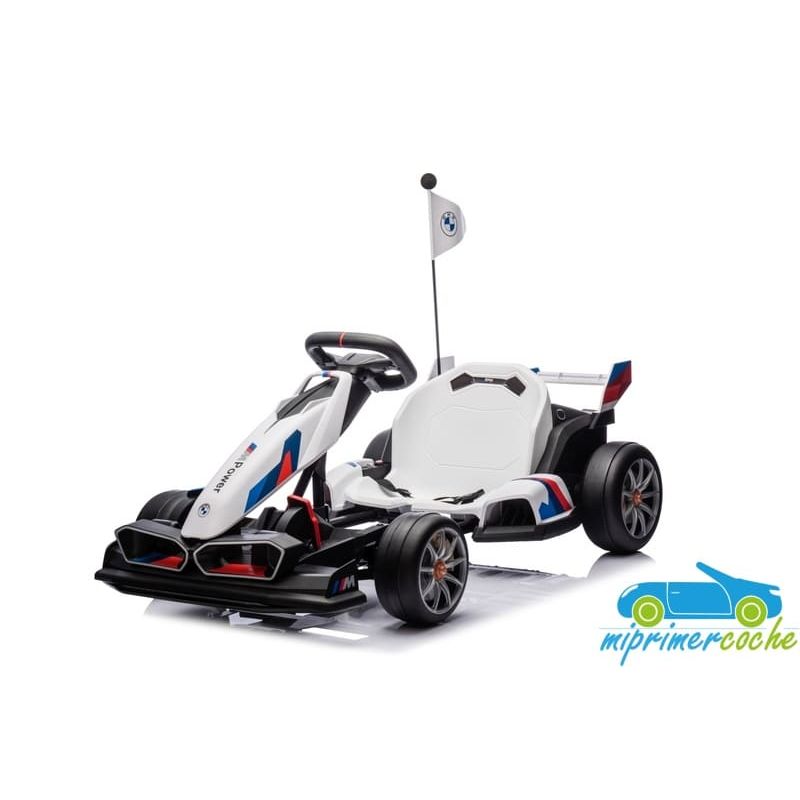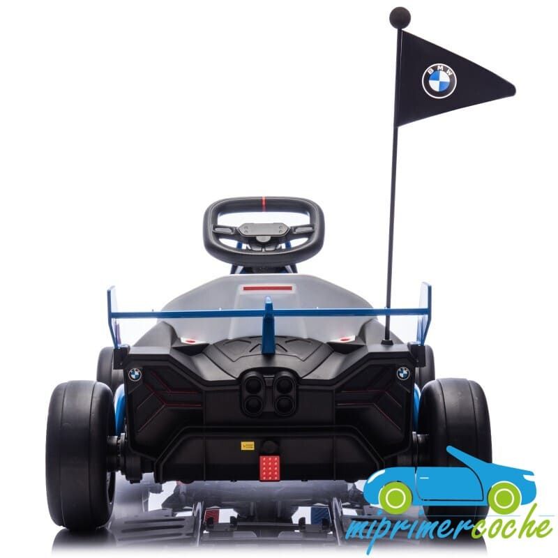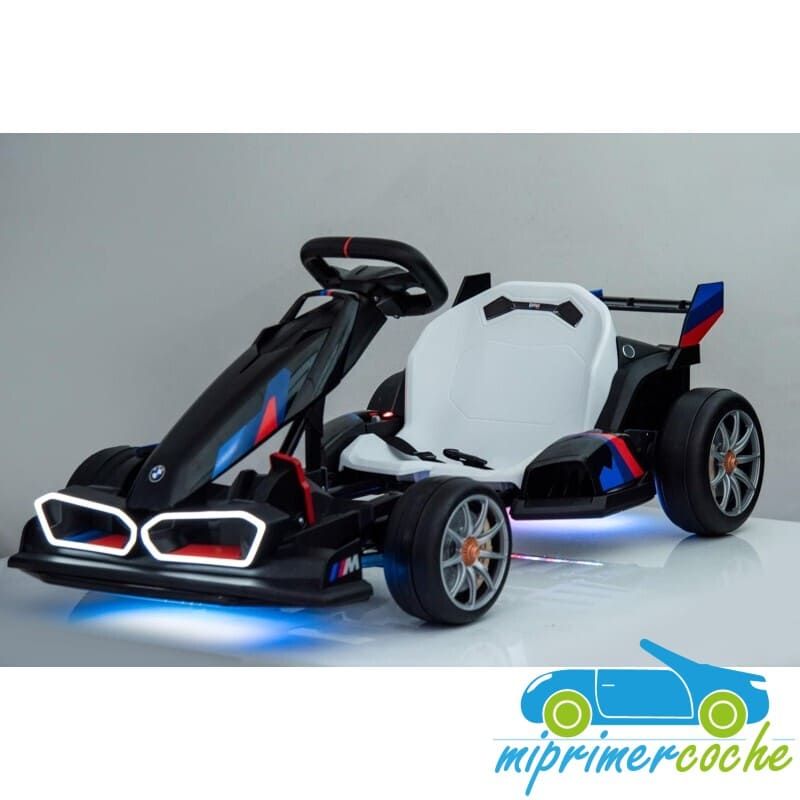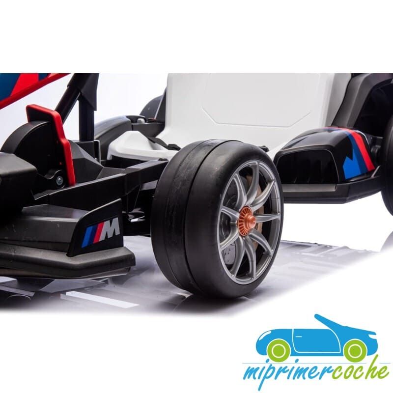 Coche eléctrico infantil DRIFT GO-KART BMW 24V con más potencia capaz de alcanzar 15 km/h para realizar derrape, con ruedas especiales para derrapes, 2 motores 24v400W, longitud ajustable, pedal de freno y pedal acelerador
