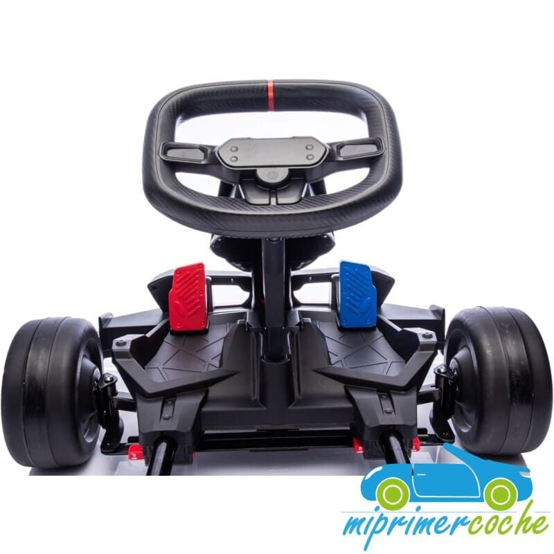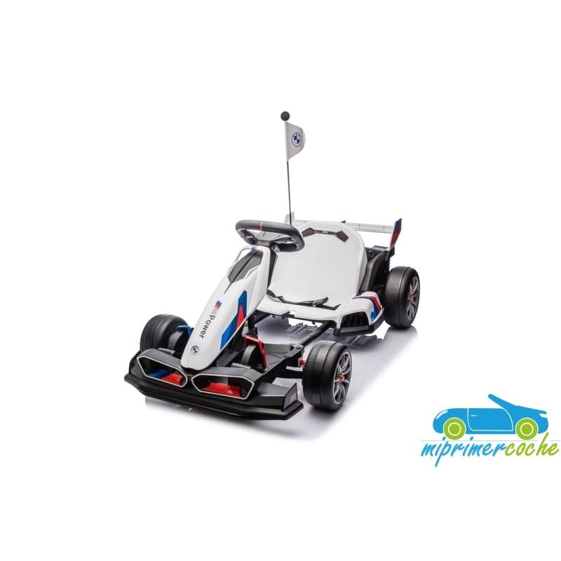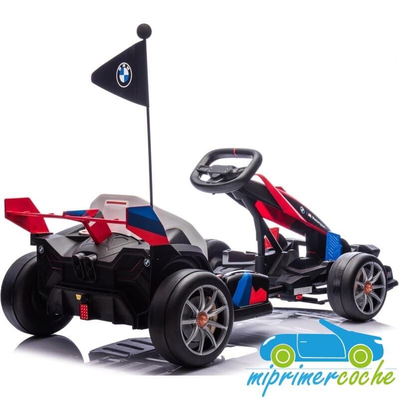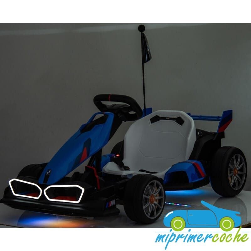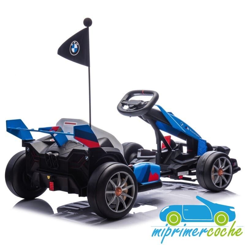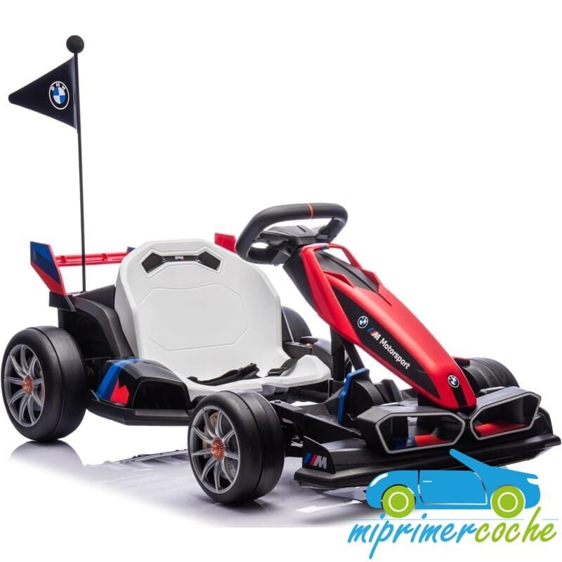 Coche eléctrico infantil DRIFT GO-KART BMW 24V con más potencia capaz de alcanzar 15 km/h para realizar derrape, con ruedas especiales para derrapes, 2 motores 24v400W, longitud ajustable, pedal de freno y pedal acelerador