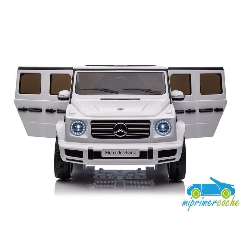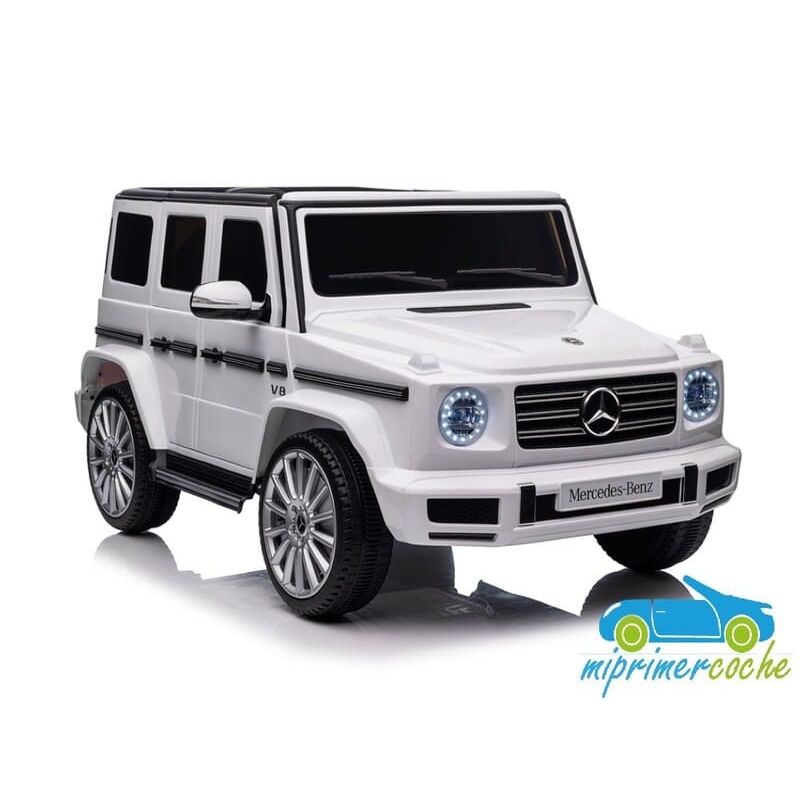 Coche eléctrico para niños Mercedes Benz G500 12V, 2 motores, mando distancia 2.4G, asa para el transporte, ruedas de caucho y asiento en piel.
