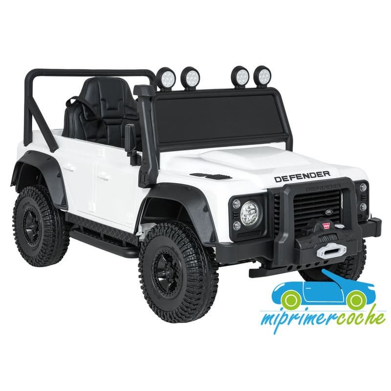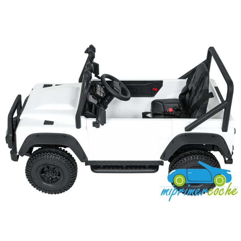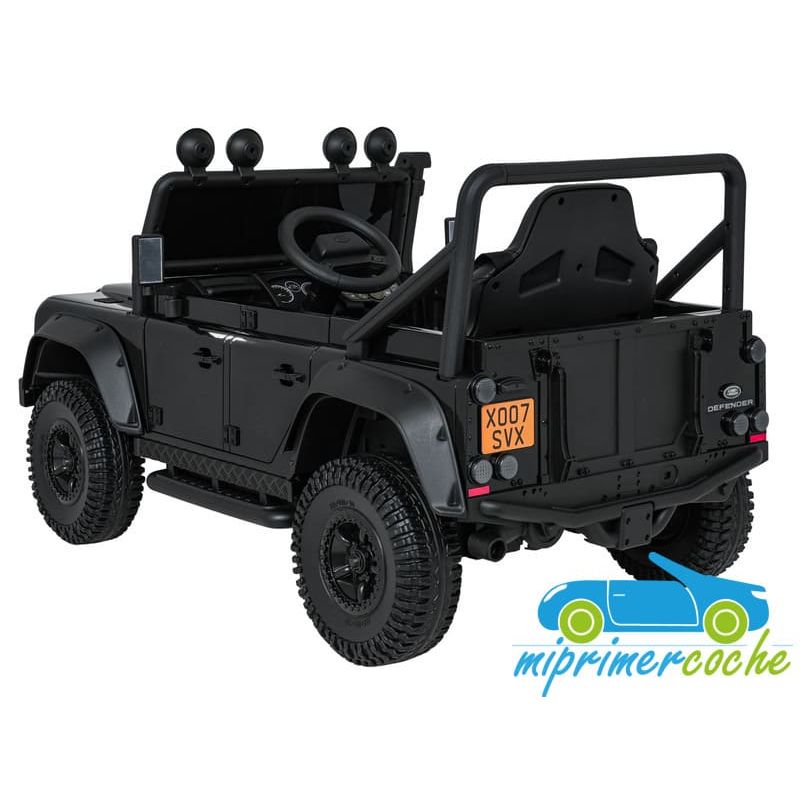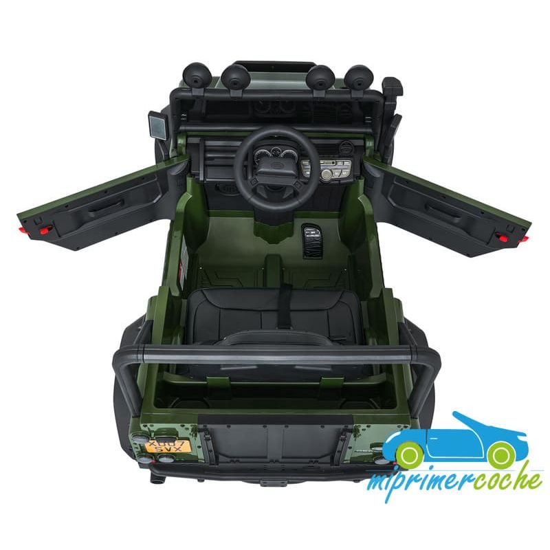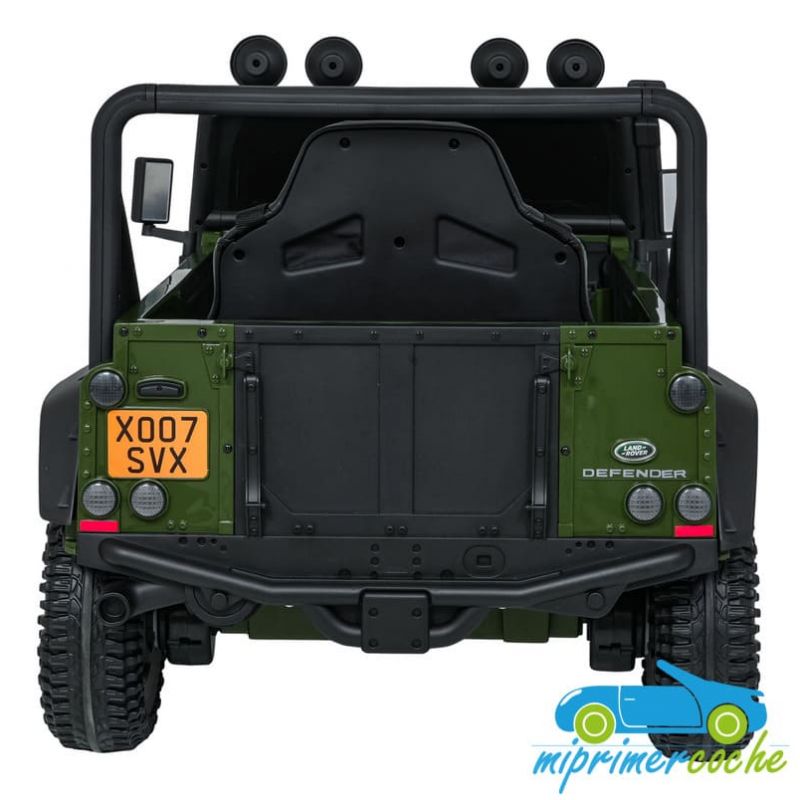 Todoterreno eléctrico para niños Land Rover Defender 110 SVX 24V con mando parental 2.4G, dos motores 24V 100W, luces LED, equipo de sonido, ruedas de caucho y asiento de eco-piel. Potencia, seguridad y diseño premium en un coche infantil de alta gama.