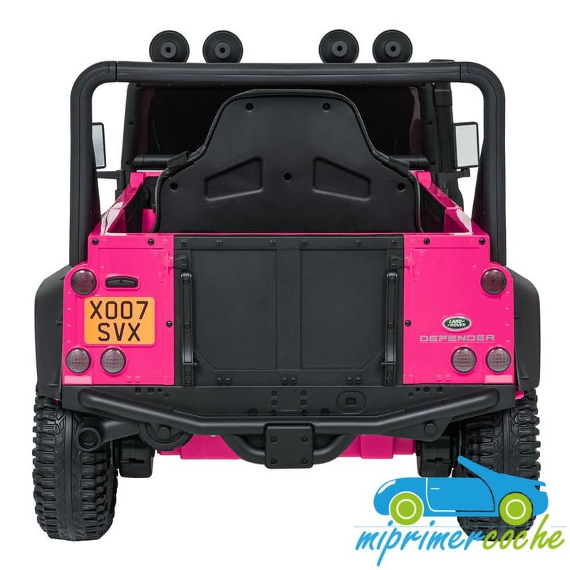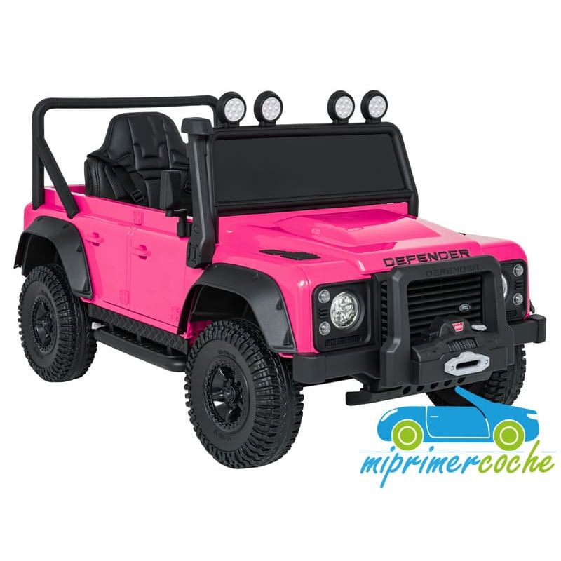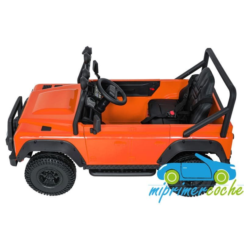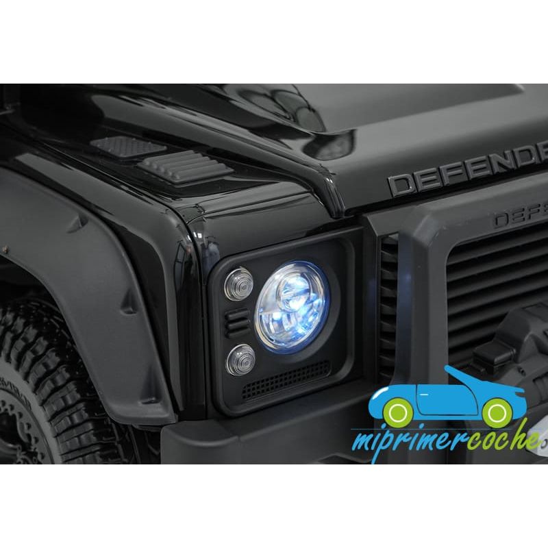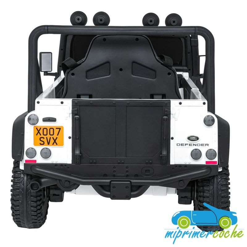 Todoterreno eléctrico para niños Land Rover Defender 110 SVX 24V con mando parental 2.4G, dos motores 24V 100W, luces LED, equipo de sonido, ruedas de caucho y asiento de eco-piel. Potencia, seguridad y diseño premium en un coche infantil de alta gama.