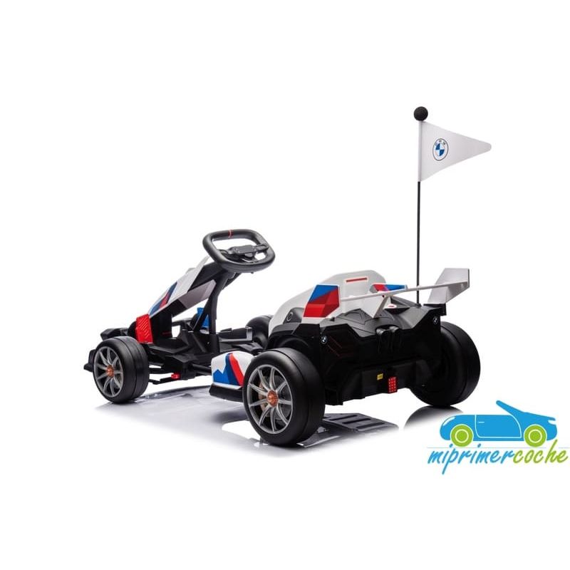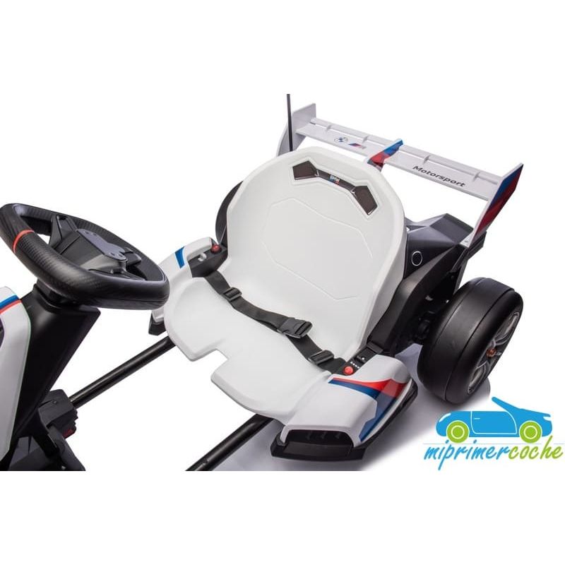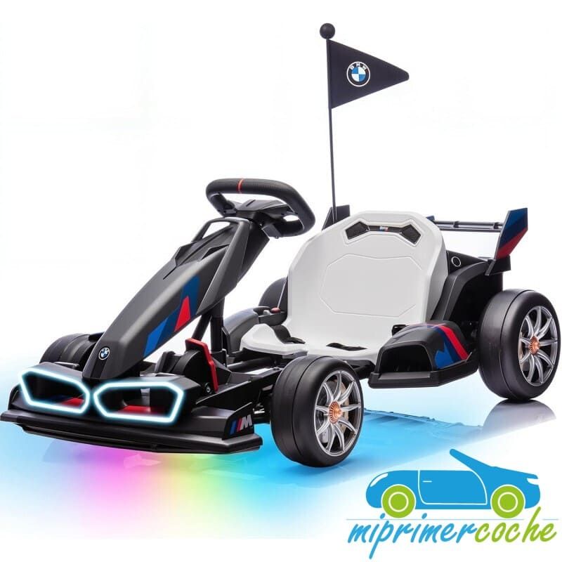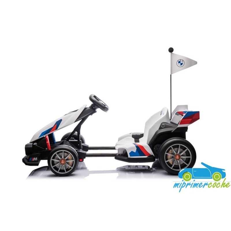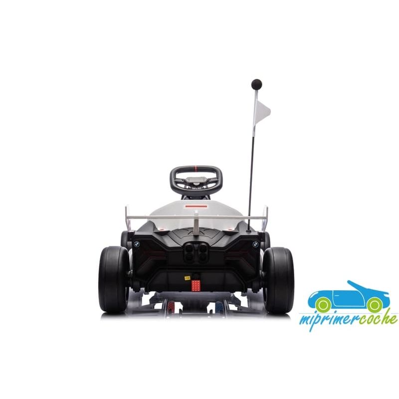 Coche eléctrico infantil DRIFT GO-KART BMW 24V con más potencia capaz de alcanzar 15 km/h para realizar derrape, con ruedas especiales para derrapes, 2 motores 24v400W, longitud ajustable, pedal de freno y pedal acelerador