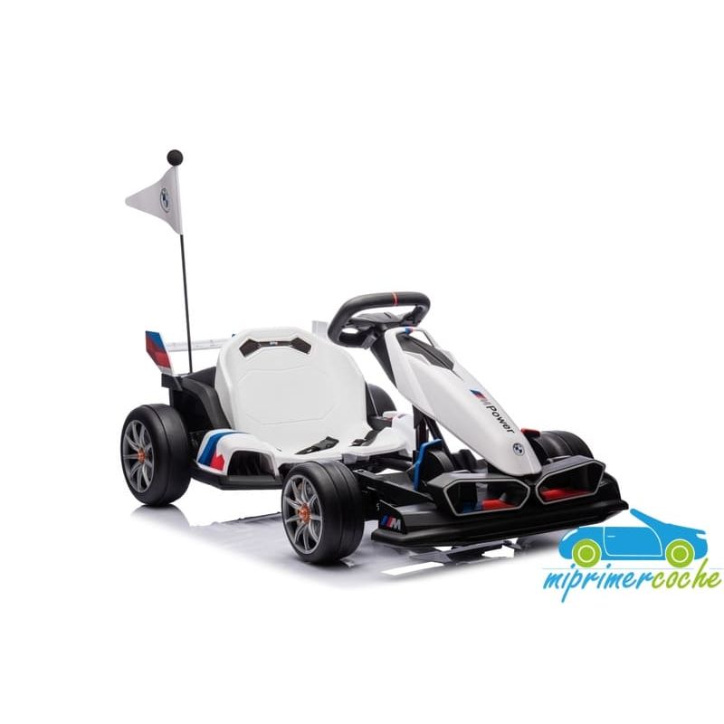 Coche eléctrico infantil DRIFT GO-KART BMW 24V con más potencia capaz de alcanzar 15 km/h para realizar derrape, con ruedas especiales para derrapes, 2 motores 24v400W, longitud ajustable, pedal de freno y pedal acelerador