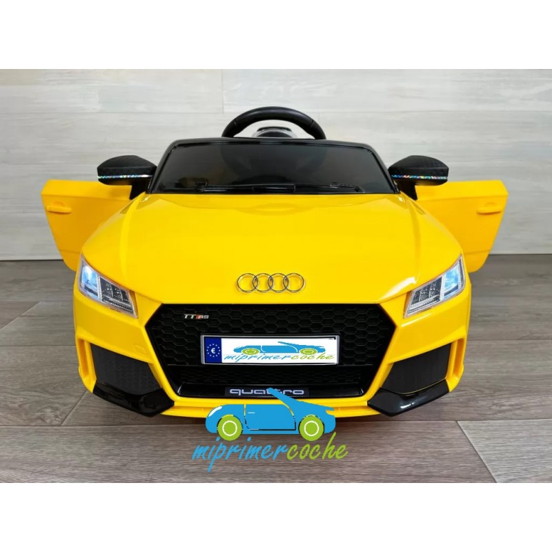 Este increíble coche eléctrico es la ultima innovación en coches electricos para niños: Audi TT RS, con LICENCIA OFICIAL AUDI , una replica exacta del Audi TT . Además incluye control remoto inteligente 2.4G por si los niños no pueden alcanzar el pedal o es demasiado joven para conducir por su cuenta, con un radio de acción de hasta 30 metros. Es un excelente coche bien construido, con un fácil montaje y plástico de alta calidad. Es un gran regalo para cualquier ocasión, Absolutamente impresionante y con el mismo diseño del auténtico AUDI TT con todas las insignias, las luces LED que causan sensación, reproductor de MP3 y USB de entrada con regulador de volumen, puertas que se abren ,salpicadero iluminado y todas las demás funcionalidades que su niño pueda soñar. Incluye el cargador y todos los accesorios necesarios.