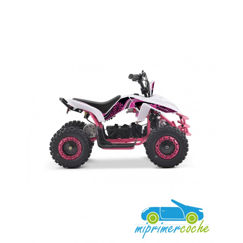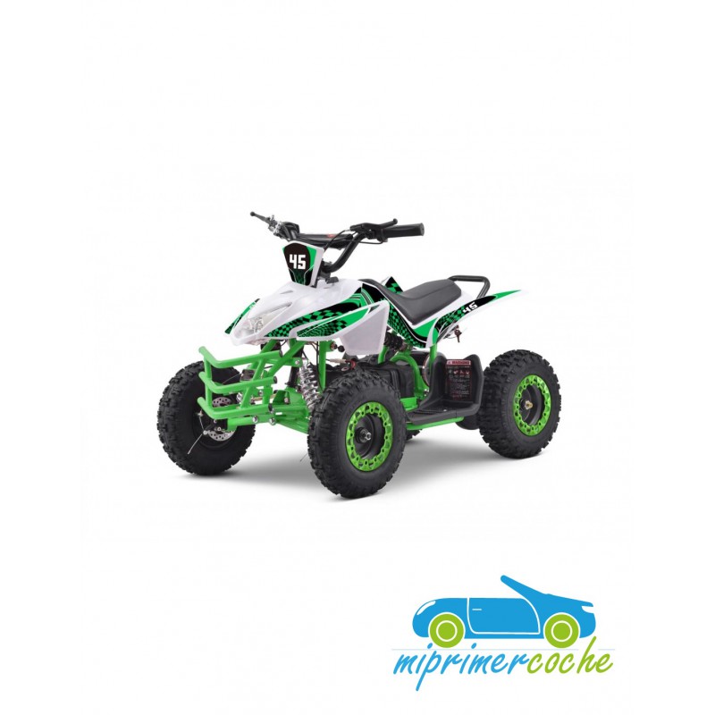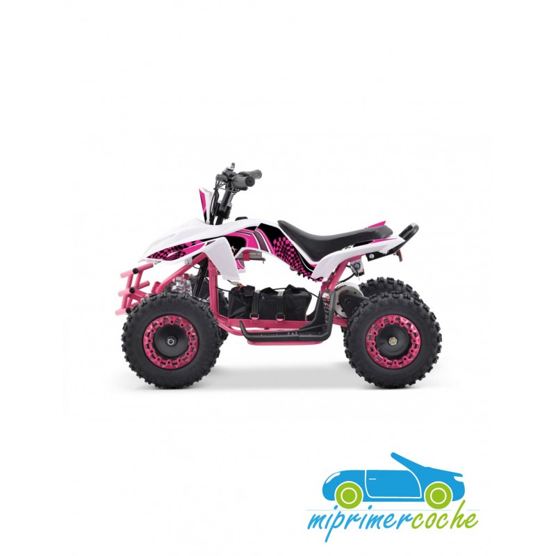 El quad eléctrico 36V infantil es un vehículo compacto, seguro y realista, diseñado para niños de 3 a 8 años. Destaca por su sistema de seguridad integrado, como el "hombre al agua", que detiene el motor automáticamente si el niño pierde el control. Con una velocidad máxima de 25 km/h y una capacidad de carga de hasta 55 kg, este quad es perfecto para aprender a conducir mientras se divierten.